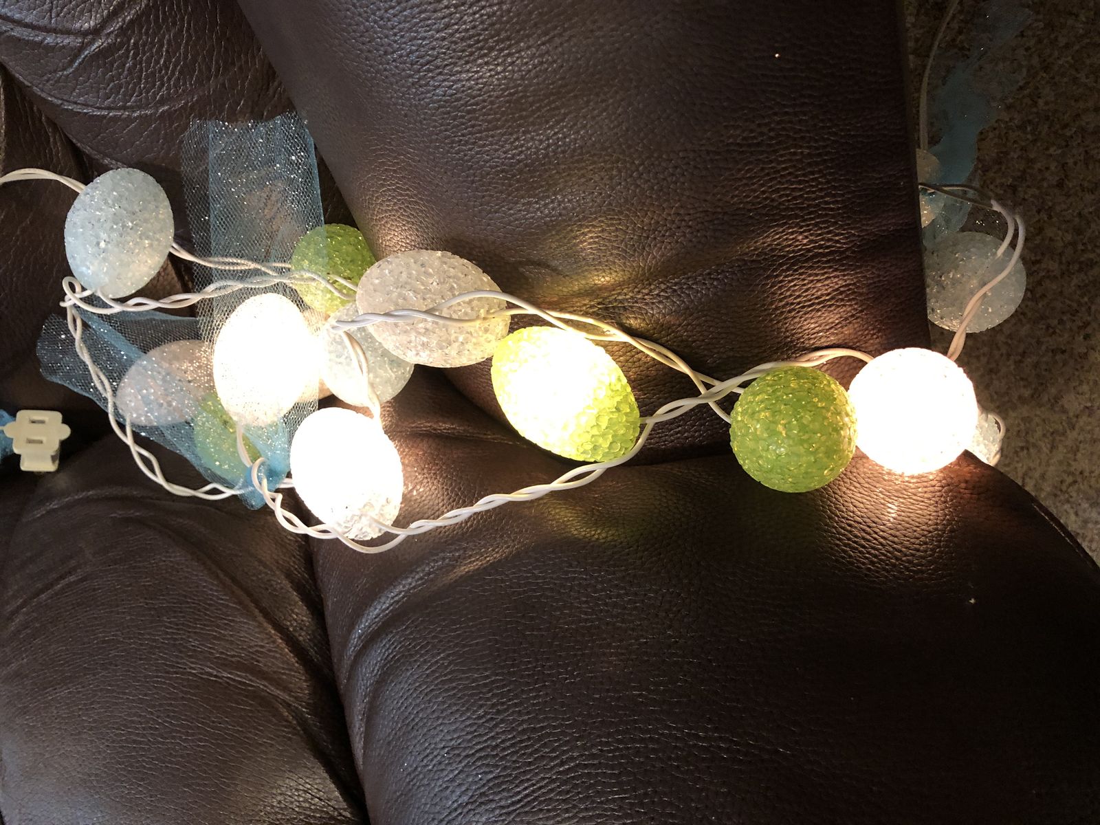 round white bowl with two rabbits lying on rim filled with eggs $15, two strings of pastel egg shped lights $8, heart shped candy dishes $5 each ( I have four)
