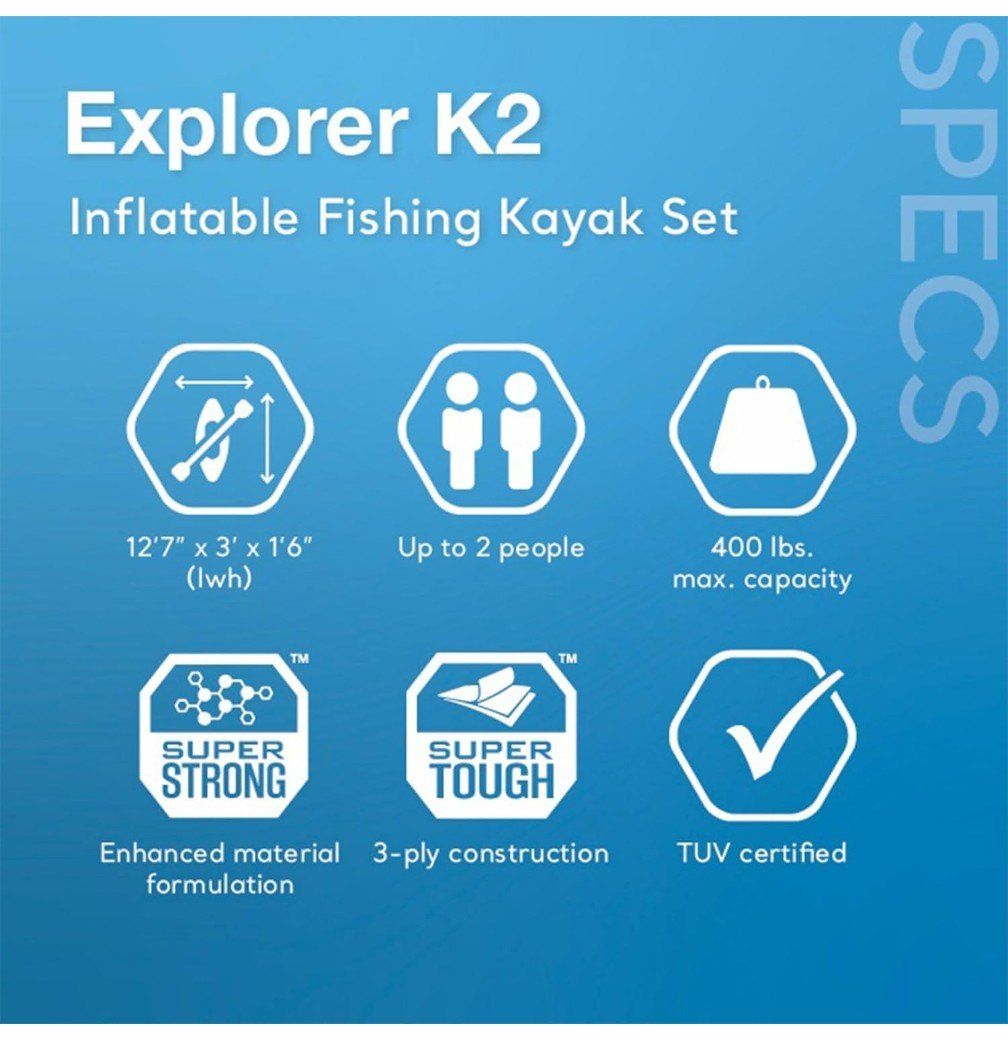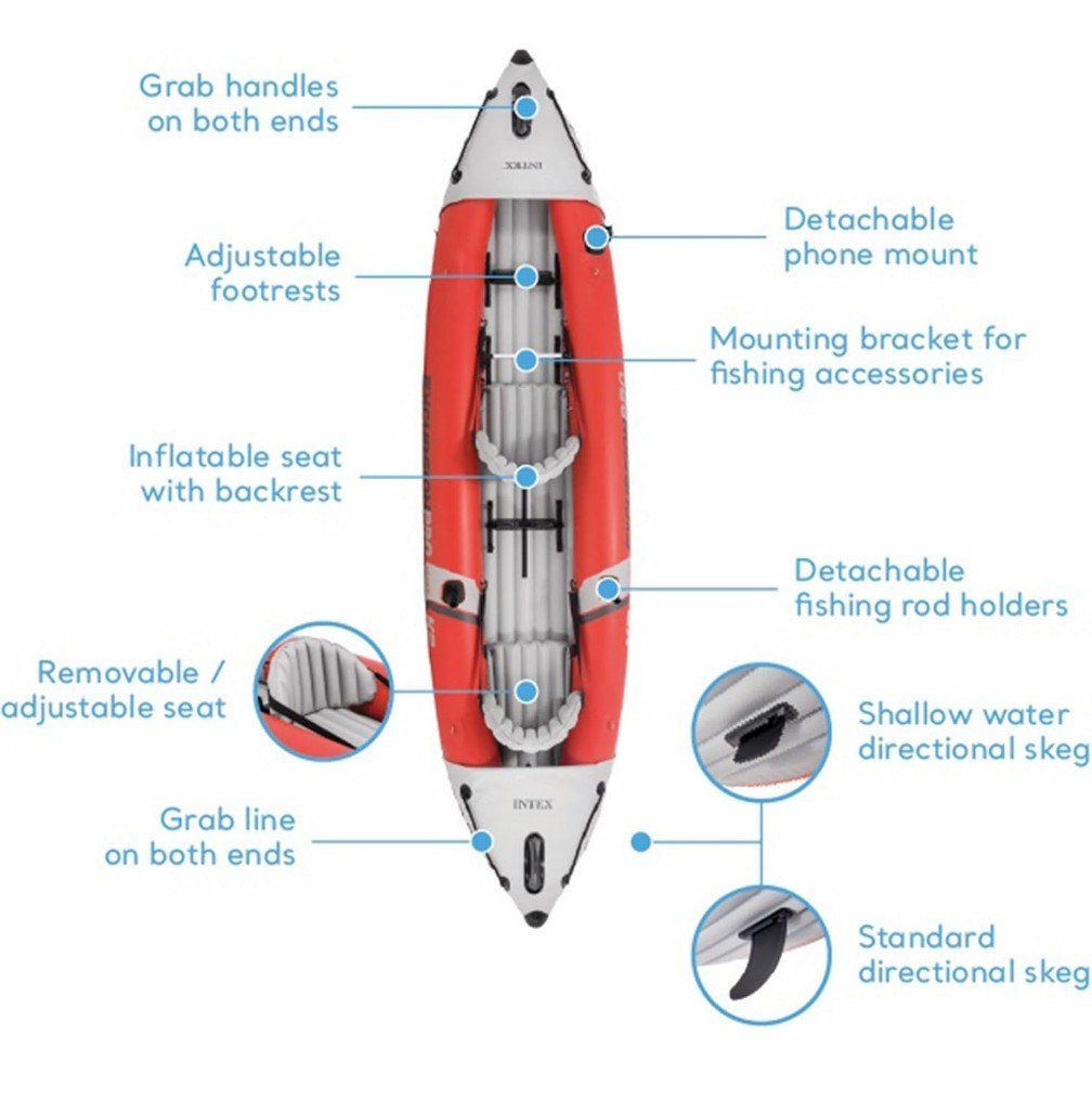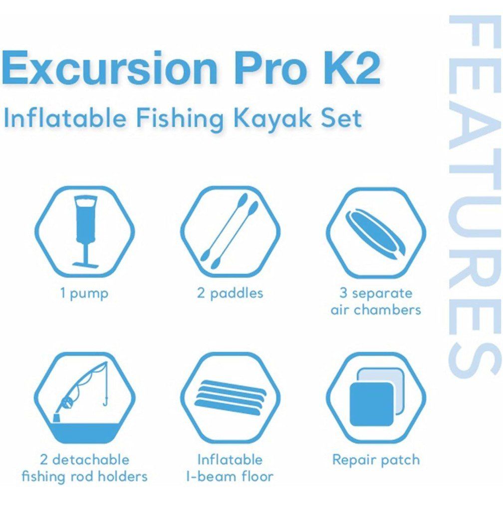 VenmoIntex 68309EP Excursion Pro K2 Inflatable Kayak Set: Includes Deluxe 86in Kayak Paddles and High-Output Pump – SuperTough PVC – Adjustable Bucket Seat – 2-Person – 400lb Weight Capacity