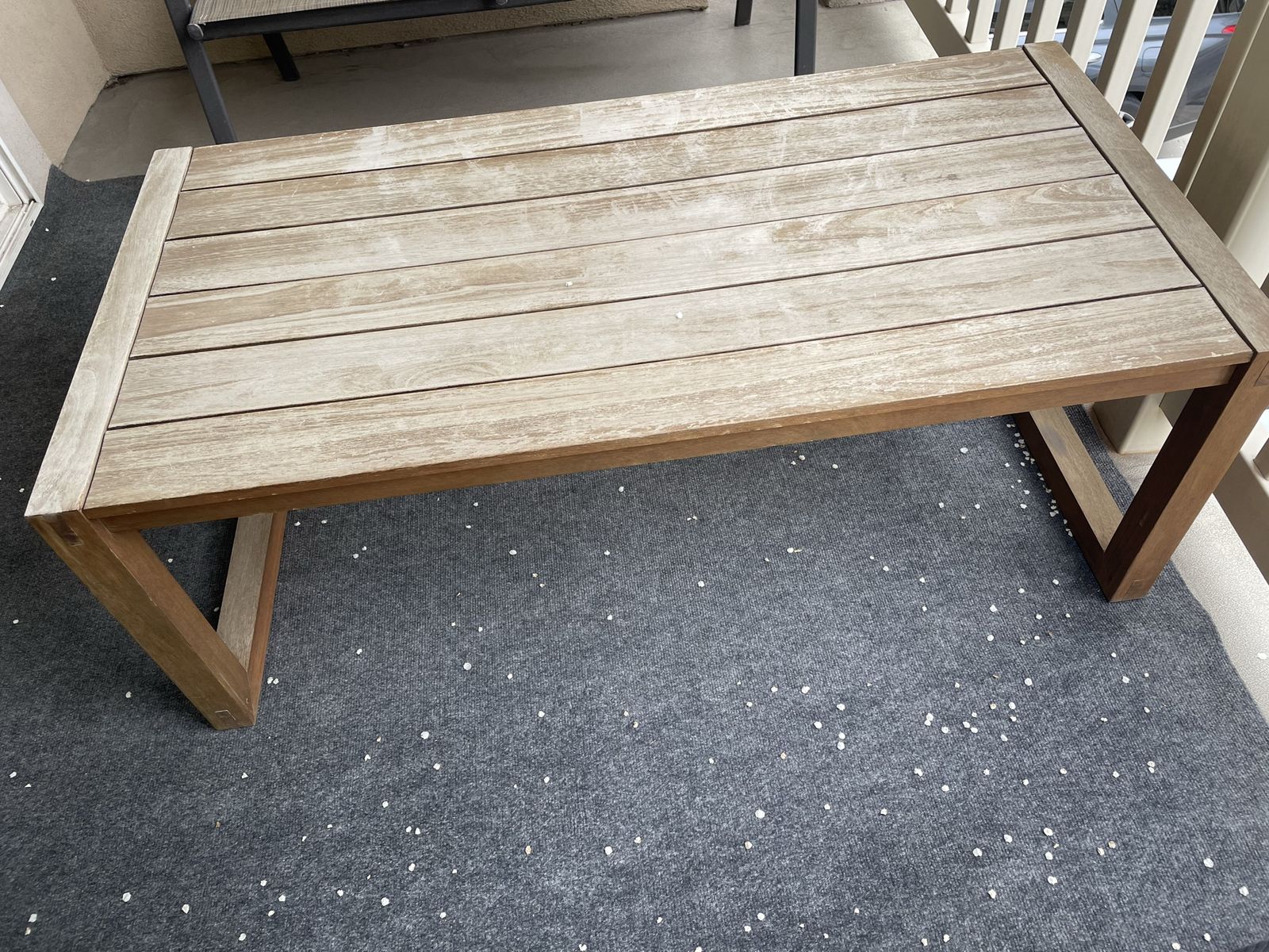 Venmo$20 for this great indoor/outdoor coffee table in solid acacia wood measures 4’x2’ and is 18” tall. It’s been a patio piece for us and has sun bleached a bit, as such it needs a sand and stain (or paint) and it would be right as rain. Priced to go, great as a little spring project for the crafty soul wanting a fun summer piece at a really deep discount. Cash or Venmo only, thanks for looking :)