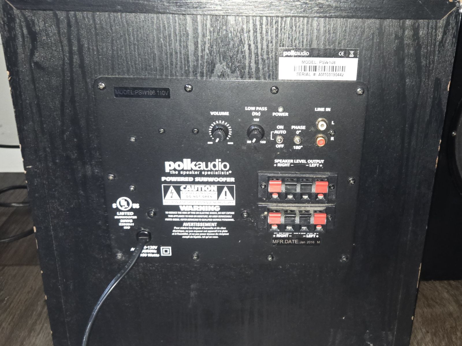 PayPalYamaha Receiver with polk audio speakers and subwoofers