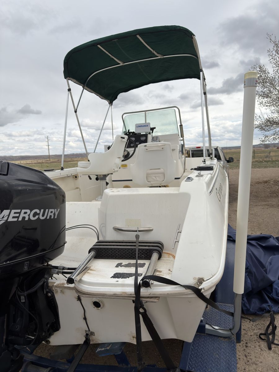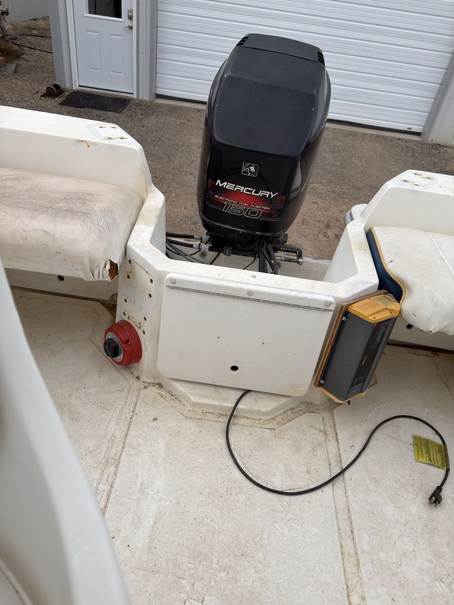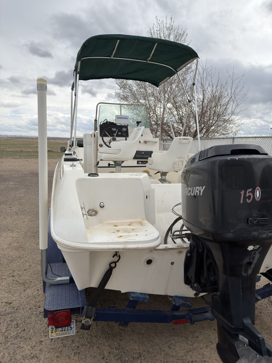 1999 20’ foot fiberglass Vhull 01 150 Mercury 2 stroke runs great. Tandem axle trailer with spare. Has Lowrance fish finder onboard battery charger, dual battery set up, Bimini top a couple of live wells, new captain chairs and a newer cover.