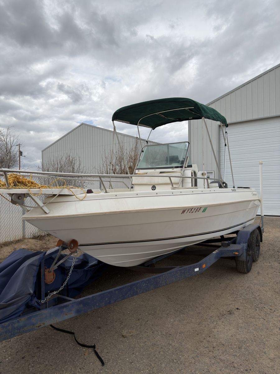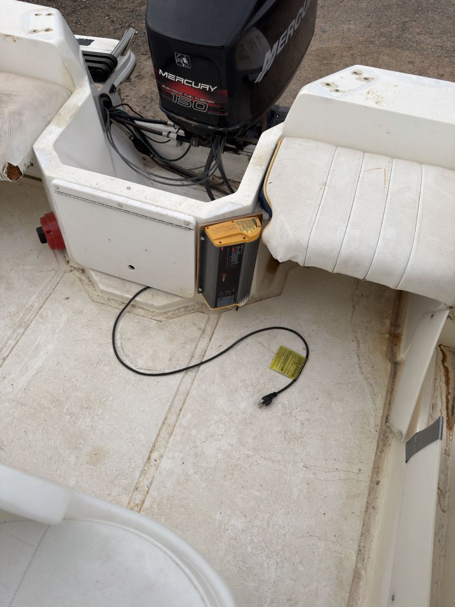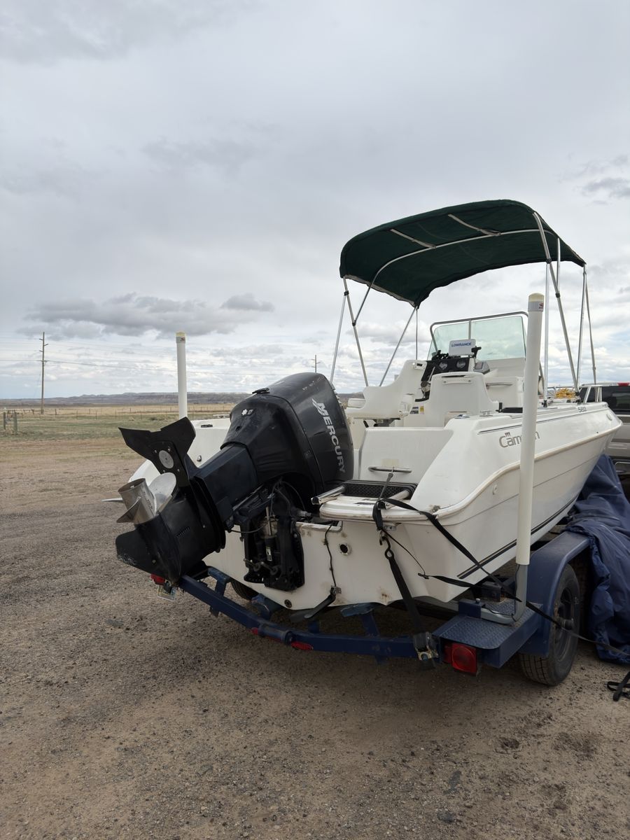 1999 20’ foot fiberglass Vhull 01 150 Mercury 2 stroke runs great. Tandem axle trailer with spare. Has Lowrance fish finder onboard battery charger, dual battery set up, Bimini top a couple of live wells, new captain chairs and a newer cover.