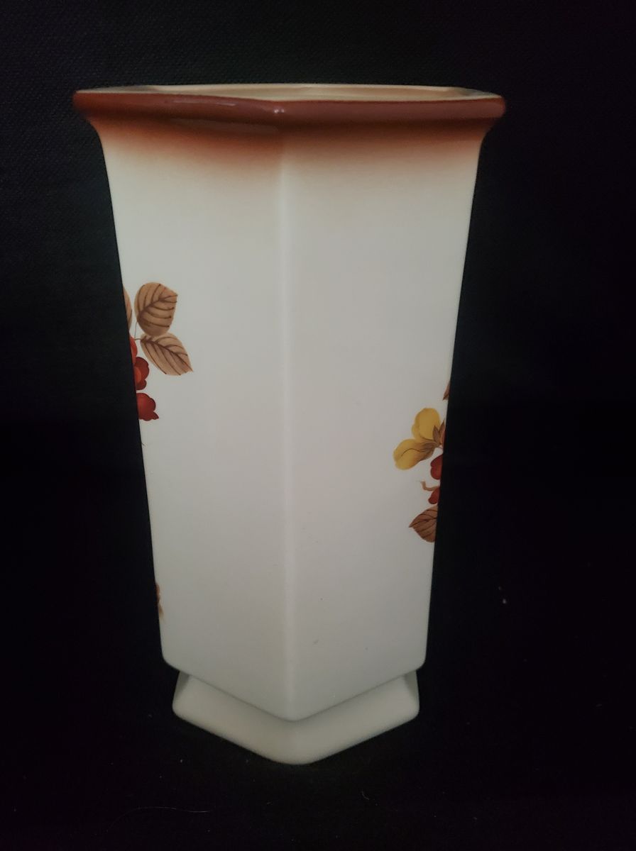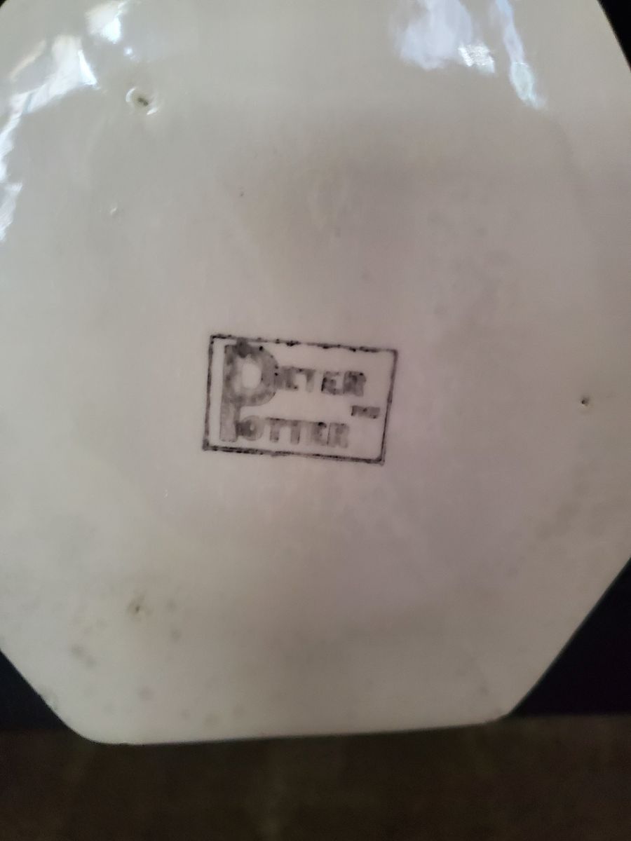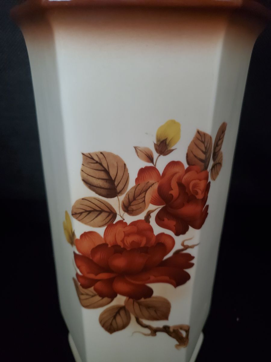 PayPalHexagonal ceramic vase with floral design on two sides. Marked on the bottom with "Peter The Potter". Vase is 10" tall