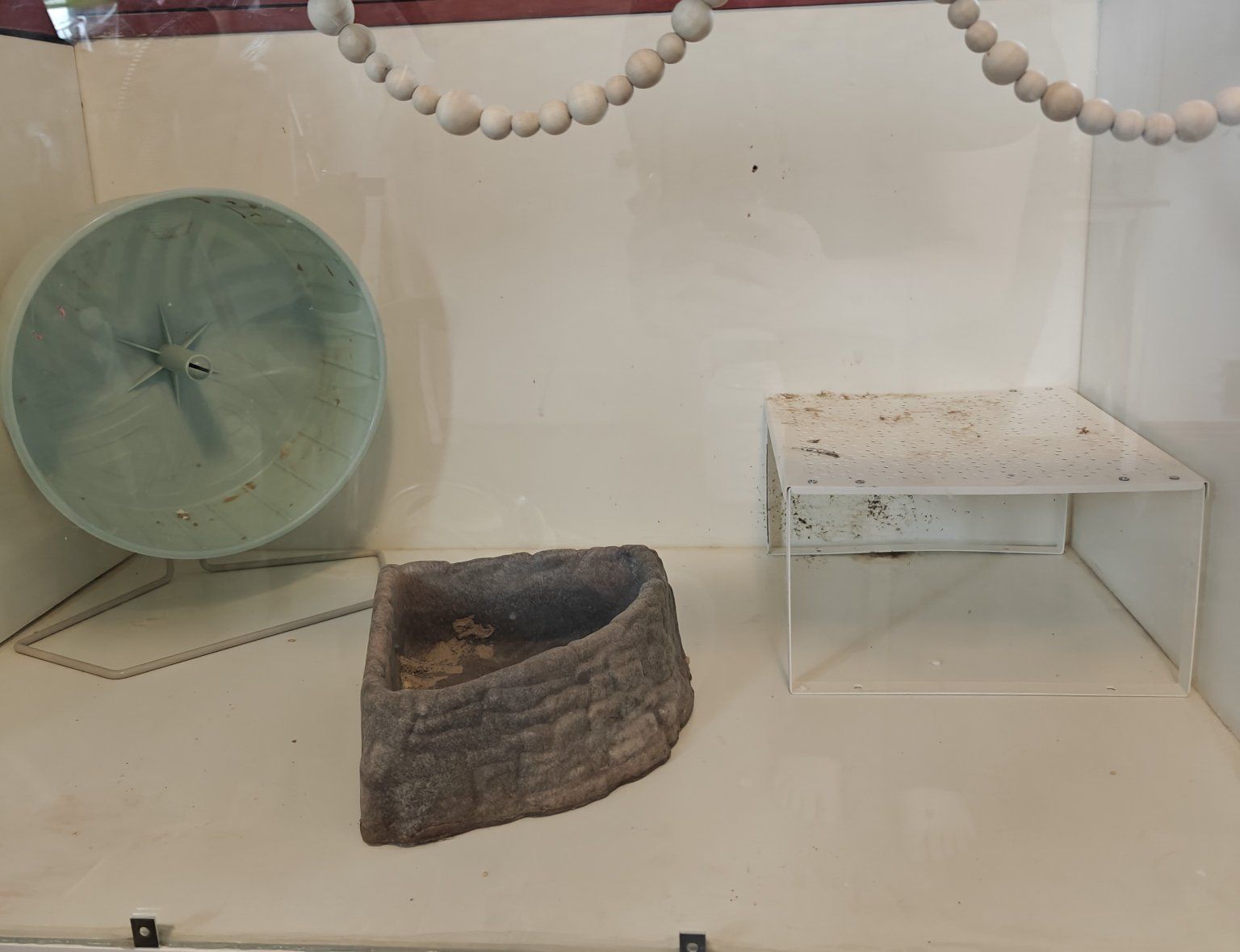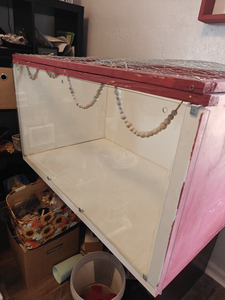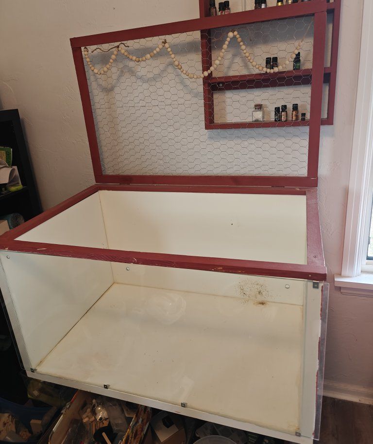 This was handmade for a class pet. We don't plan on getting another hamster due to space, so hopefully we can pass on this great deal to someone else. This was a custom build using Ikea wood, worth easily double we are asking for it now. This would be a great size for a Syrian hamster or smaller. Our little guy loved burrowing, so he definitely took advantage of the space we gave him.