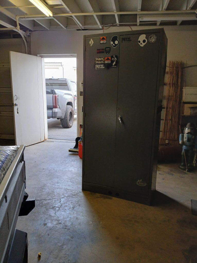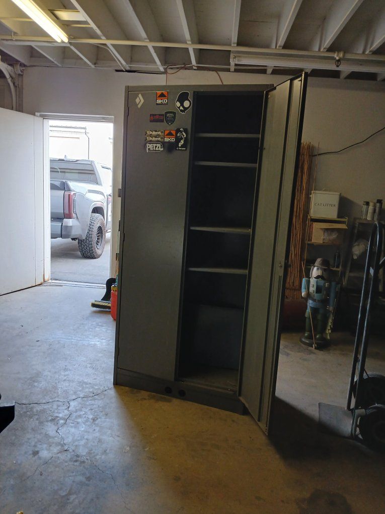 Gray metal cabinet 78 inches tall 3 foot wide 18 inches deep 5 shelves not fixed OBO. Cash only