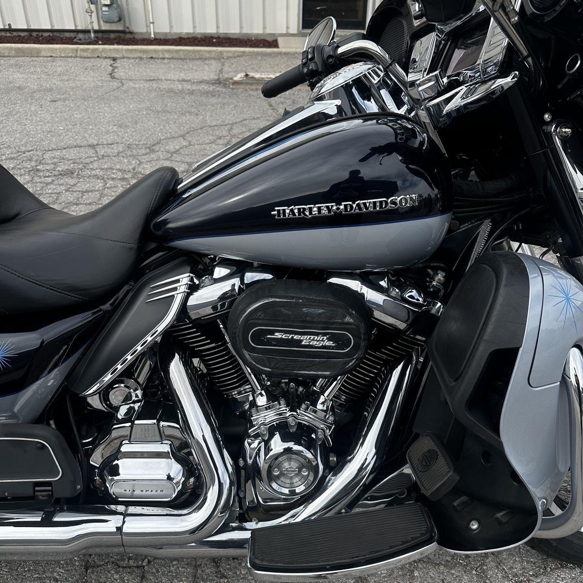 This 19 Ultra Limited has a cool two tone paint job and the 114 Milwaukee Eight engine! It has added performance with a Screaming Eagle air intake and a Vance and Hines exhaust system! It has all of the touring luxury you could ask for with a powerful torquey engine! Running smooth with just 33,900 miles and a clean title!