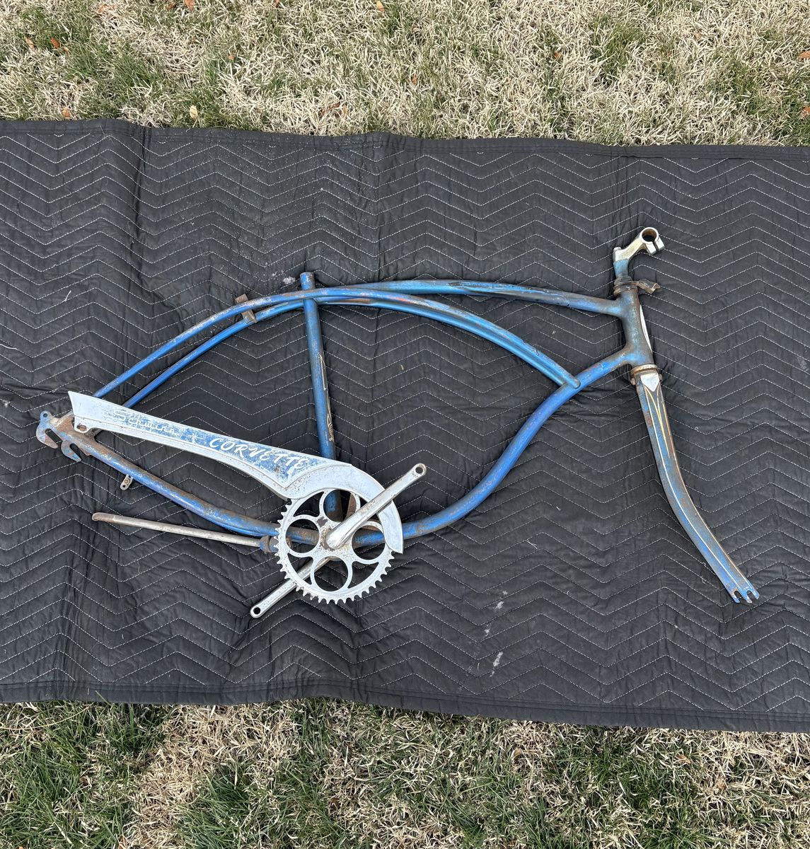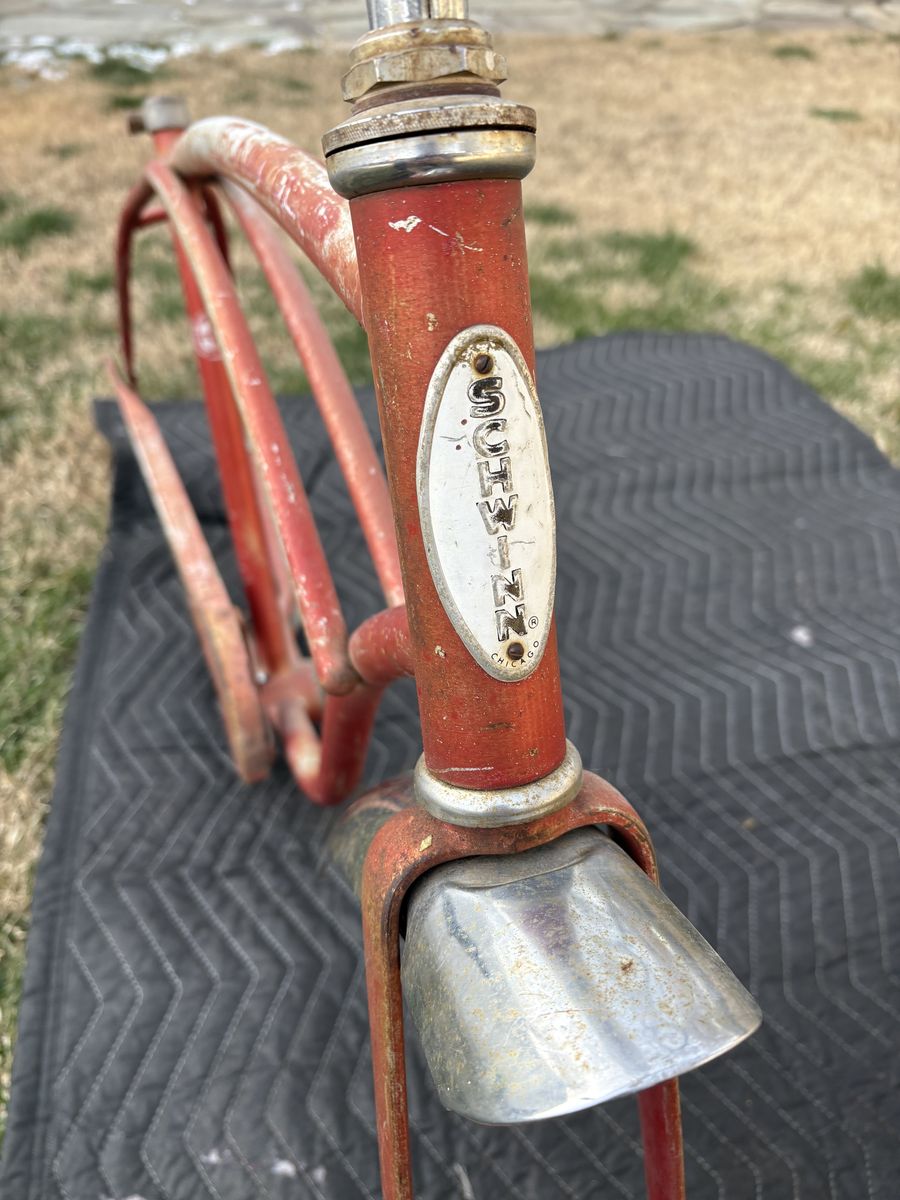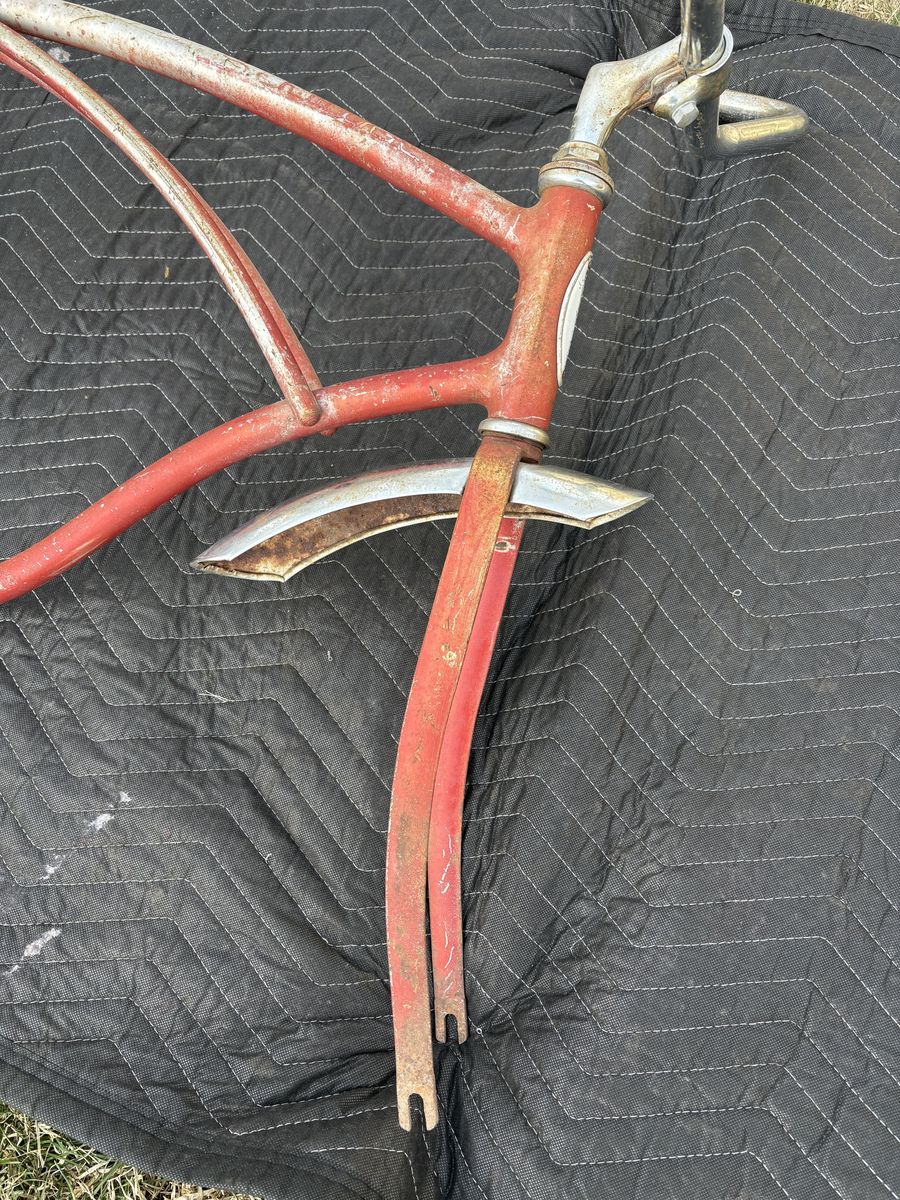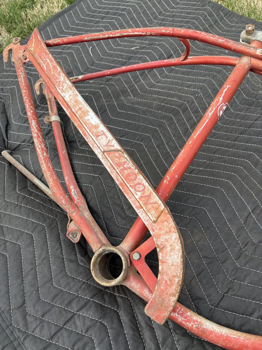 PayPalFor sale are these two original Chicago Schwinn frames see pictures for condition. They are straight and both come with the correct fork and both have original paint. The red one is a 1966 typhoon and the blue one is a 1959 Corvette.