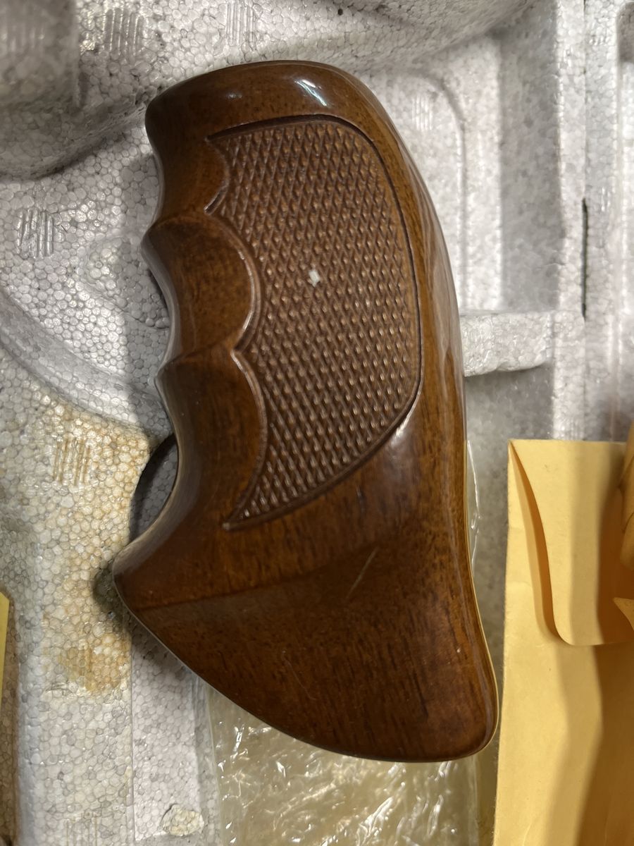 As new grip. 8” stainless barrel. Tiny sight parts. Box with sleeve. You might have the pistol bought from a Santaquin estate sale.? Sir #1333. I will ship for postage. $50. Thanks for looking.