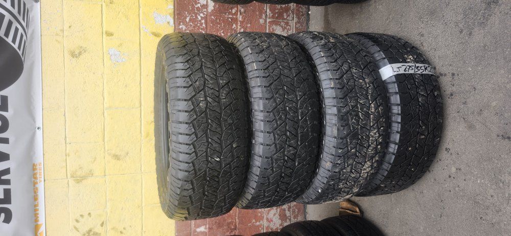 SET OF 4 USED TIRES LT275/55R20 HANKOOK DYNAPRO AT2 XTREME 85% TREAD DEPTH
