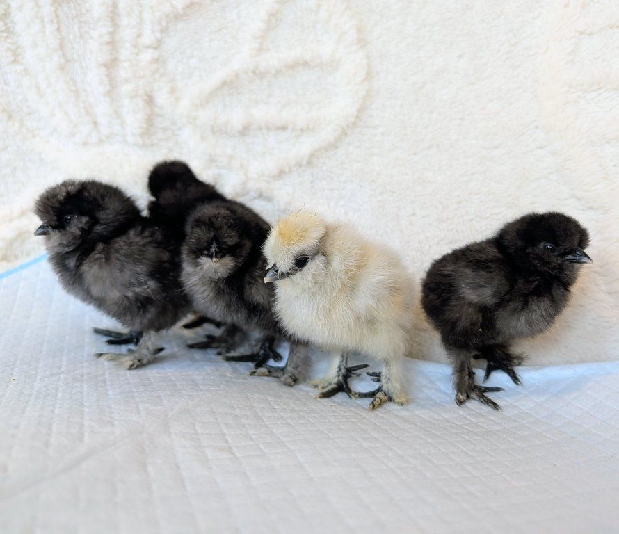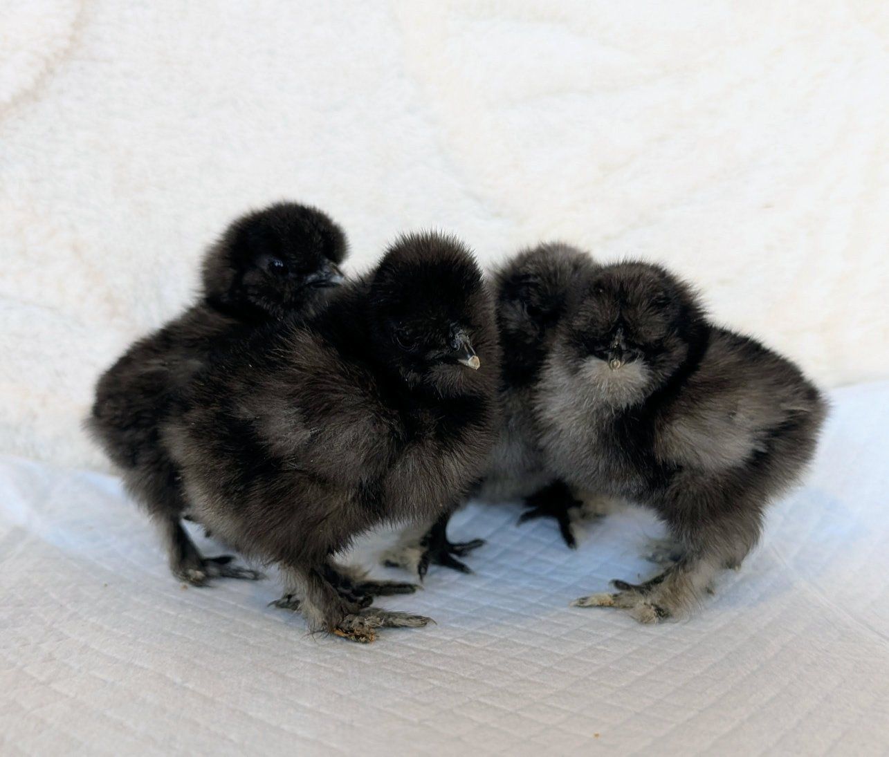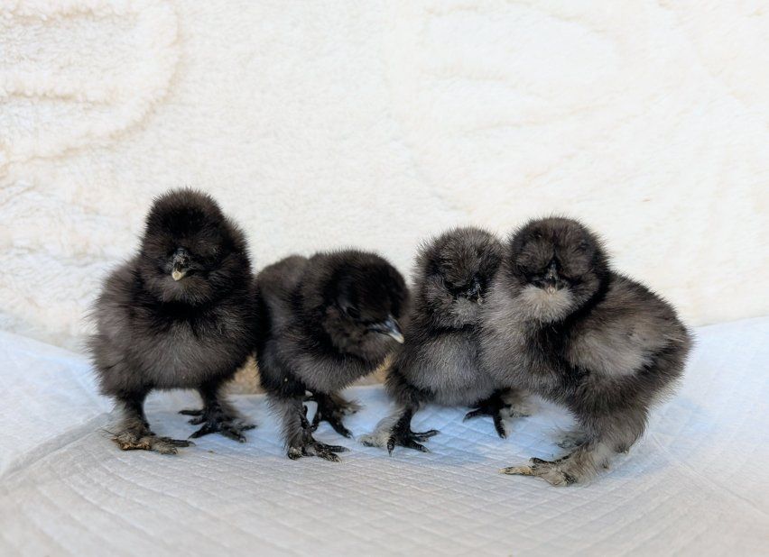 VenmoWe have 5 Silkie chicks available from a recent hatch. 1 splash ($15) and 4 blue/black ($10 each). Sold straight run (unsexed).