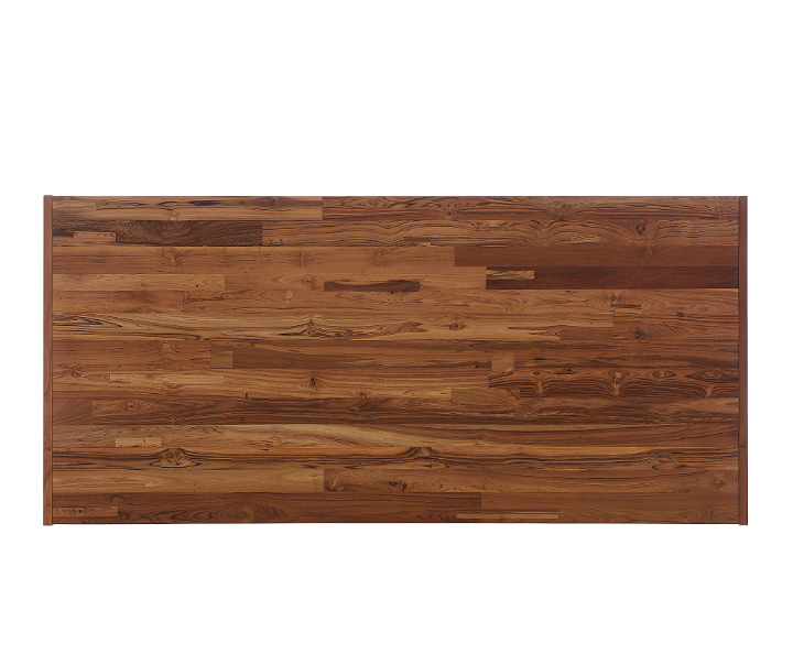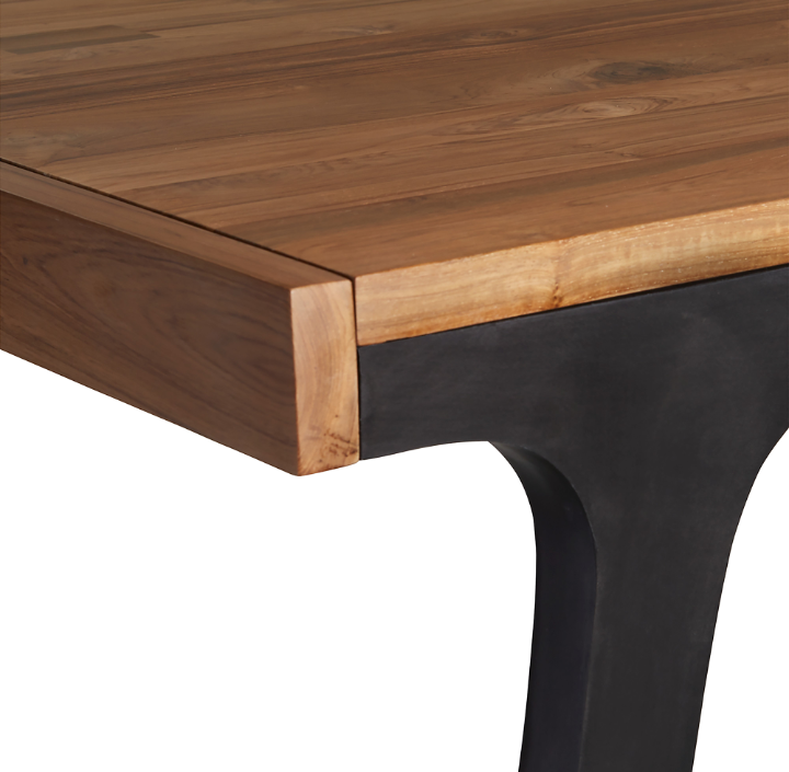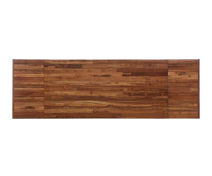 Interpret it as farmhouse forward or mixed-material modern—either way, Lakin expanding dining table strikes a sophisticated balance between wood and metal. A refined frame in repurposed teak is topped with hand-selected boards that are sanded, buffed and waxed to a warm glow.