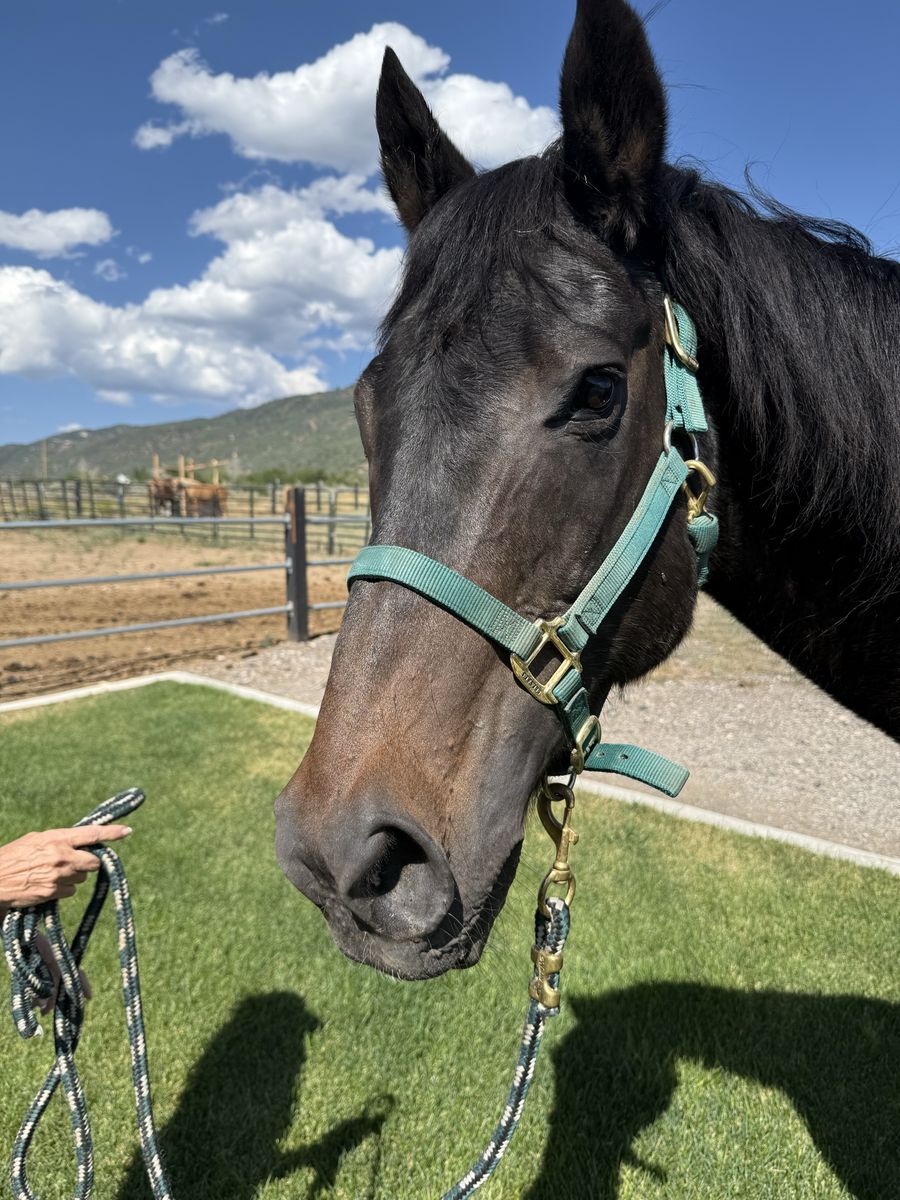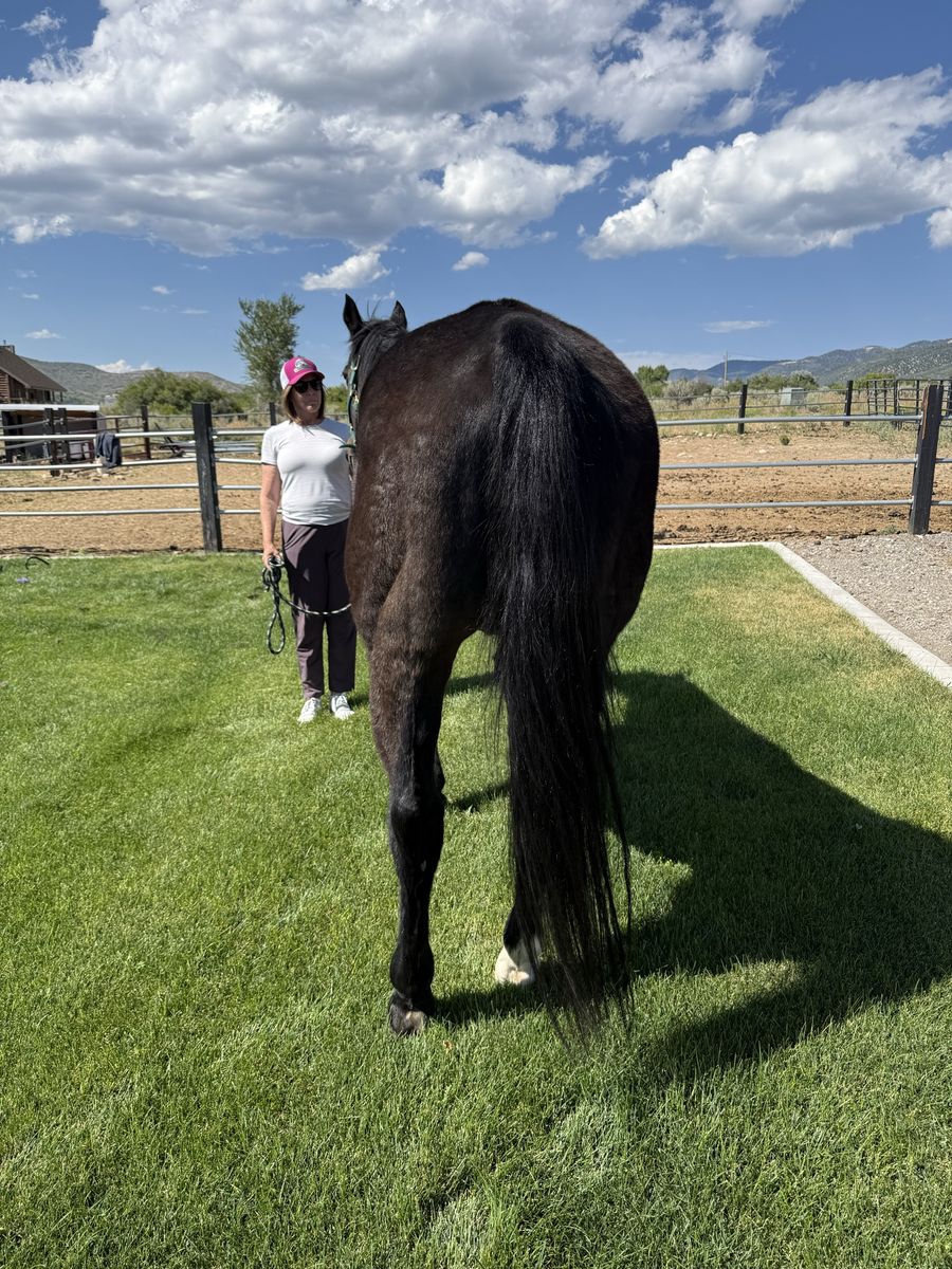 Been there done that horse. Calm personality. Loads perfect. Stands tied. Good for the ferrier and for dewormer and shots. Easy to saddle. Rides out alone. Has been hunting and packing. He is tall. My 9 yr old can catch him and ride him bareback and a halter. He has some arthritis, is a little bit of a hard keeper. He needs more activity than he is getting to maintain and build some muscle.