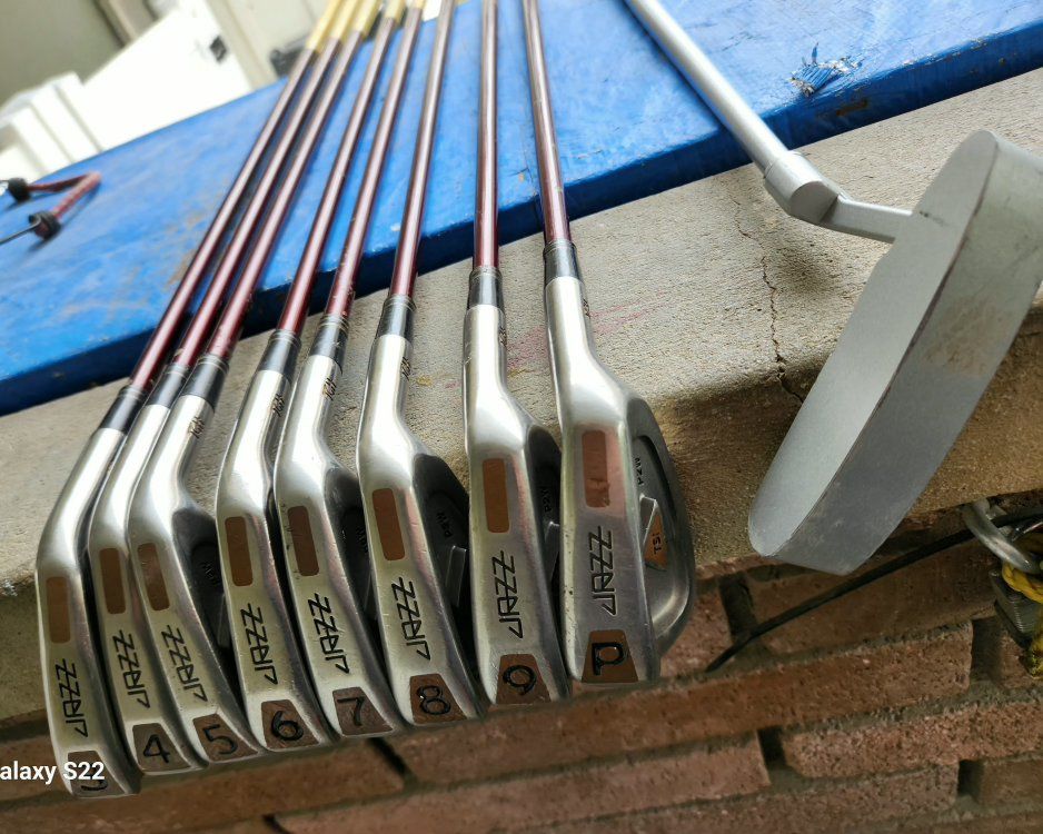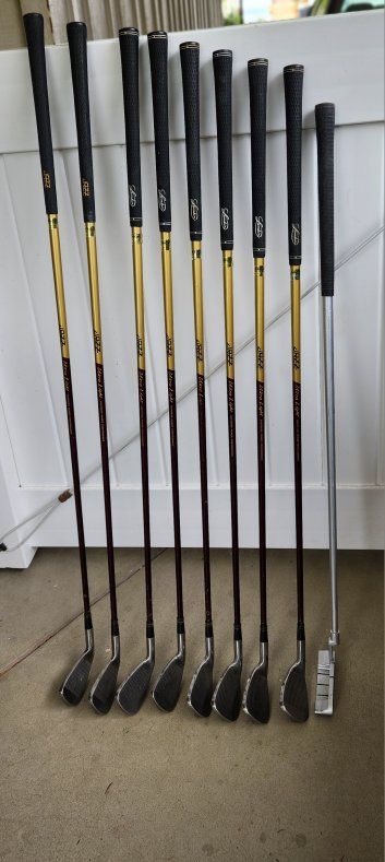 VenmoFull Size and complete 100% graphite golf set. Comes with like new self-standing bag and 6 golfballs. The drivers ( two #1's, 3 and 5) are oversized steel heads, graphite shafts and good grips. The irons (3-pitching wedge) are Jazz brand, with midsized, toe-weighted, deep cavity heads, graphite shafts and like new Lamkin grips. The putter is a midsized head, offset graphite shaft and good rubber grip. The selfstanding bag is a Top-Flite brand that is in new condition, with clean pockets, working zippers and backpack style straps.