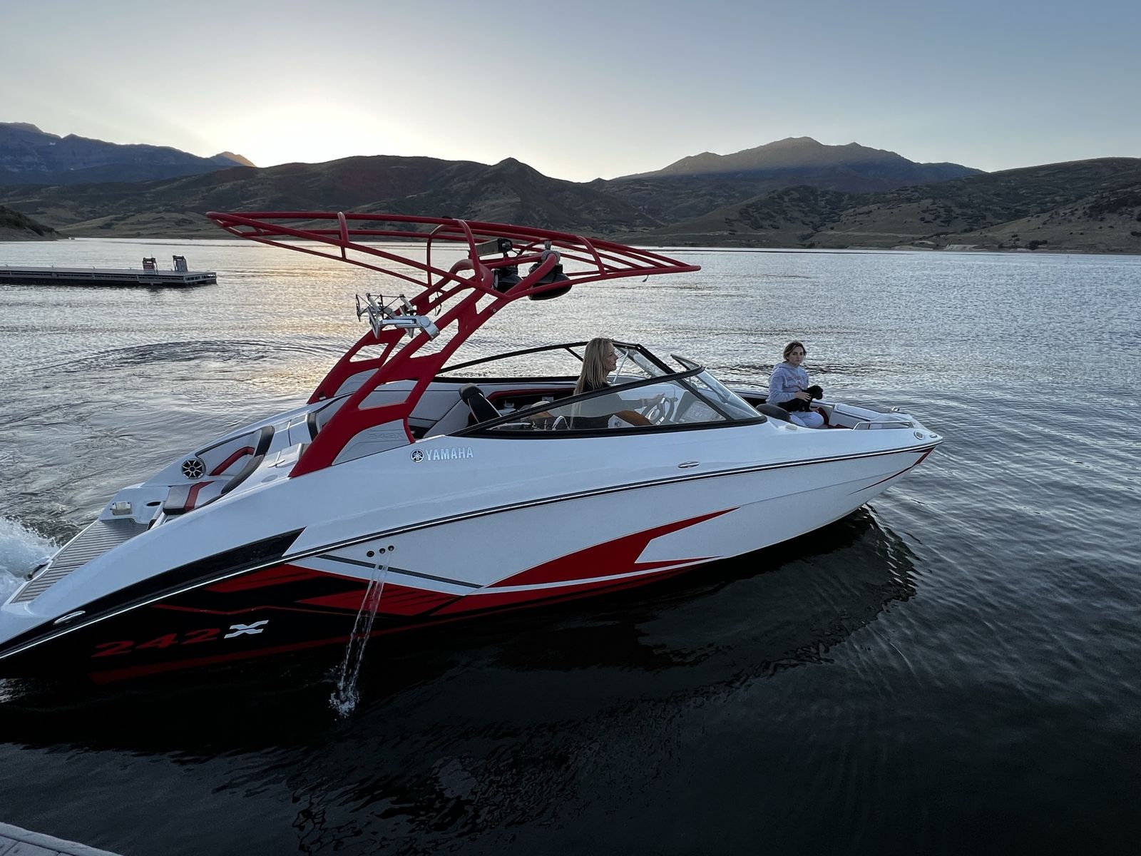 The 242XE is basically Yamaha’s “do-it-all” 24ft boat: • Strong power (360 HP) • Built-in surf system • Super safe + shallow-friendly