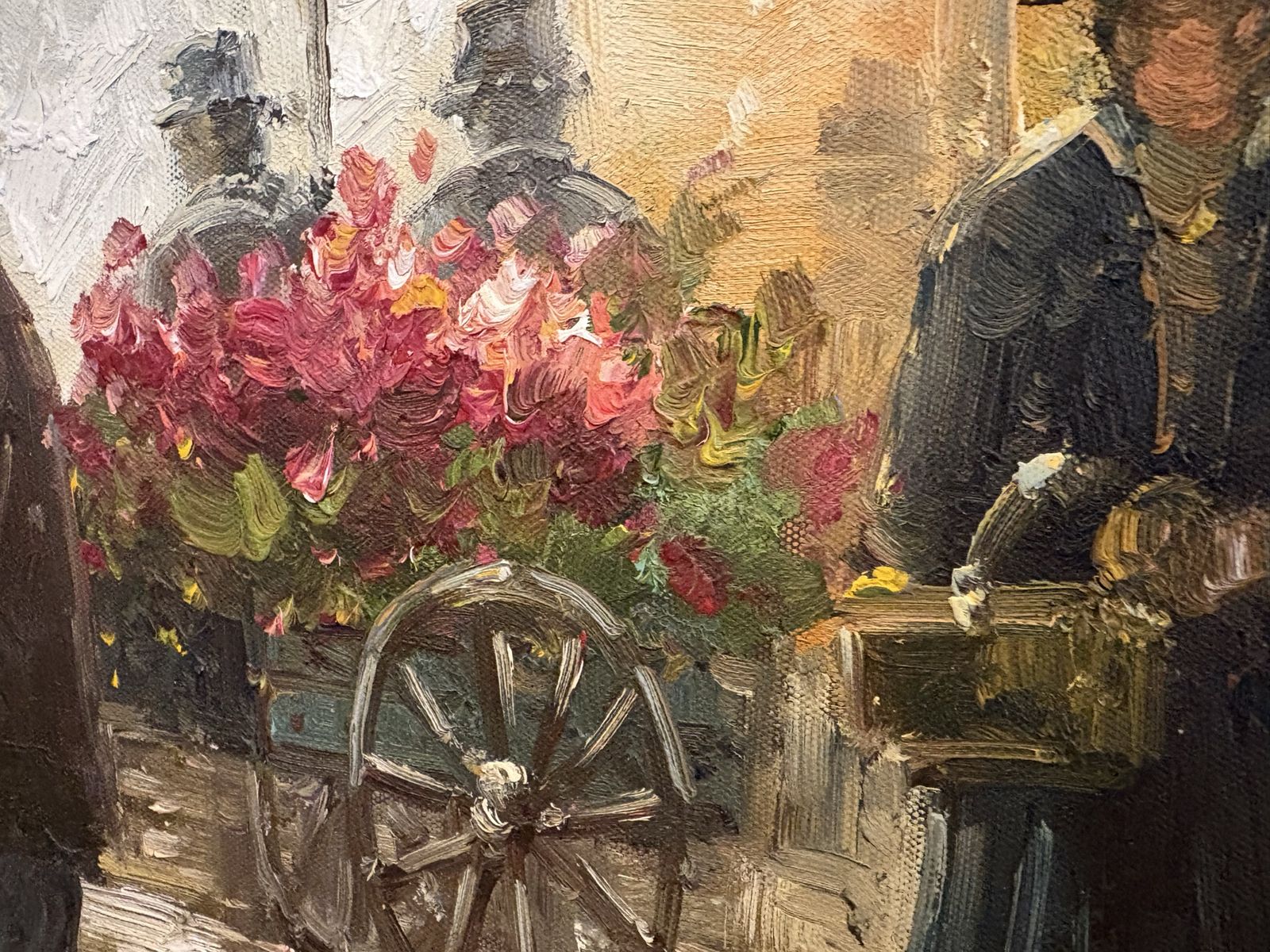 I have a beautiful large impressionist painting of a trolley and a horse drawn carriage in the rain. It looks like a G Harvey painting but I don’t see a signature so I’m pricing it as if it’s not. It has beautiful thick paint (see the closeup picture). It’s in a dark antique gold frame. The frame is 54 inches wide and 43 inches tall. It has wire on the back for hanging. The last 3 pictures are other artwork that I have listed on KSL. See my other ads for jewelry, artwork, home decor and more.