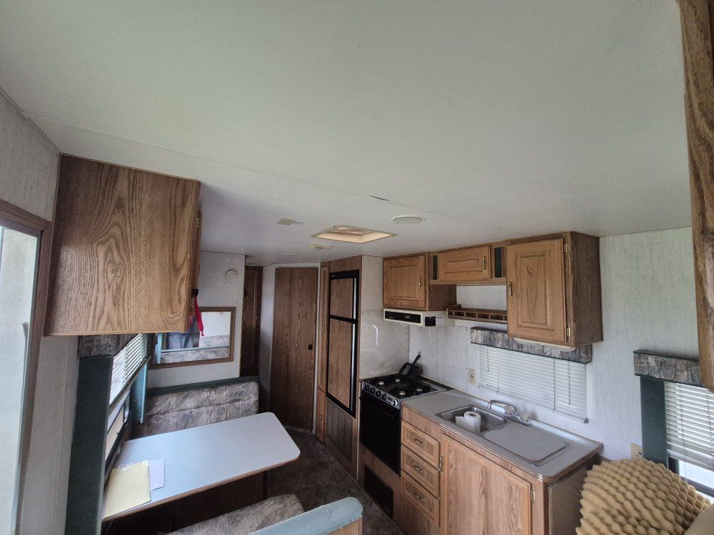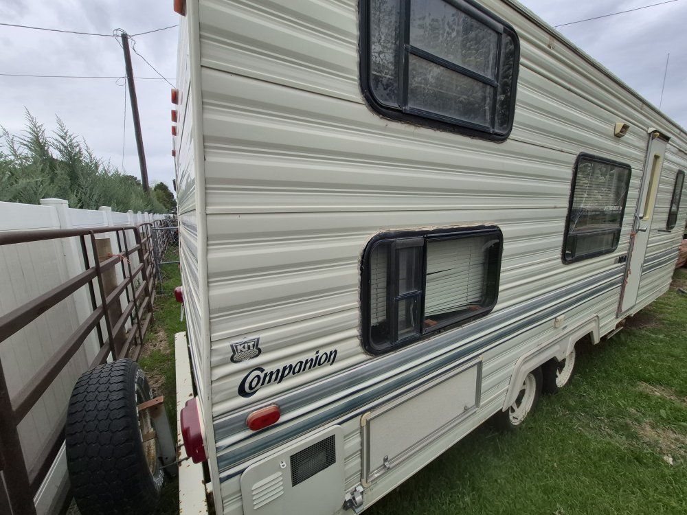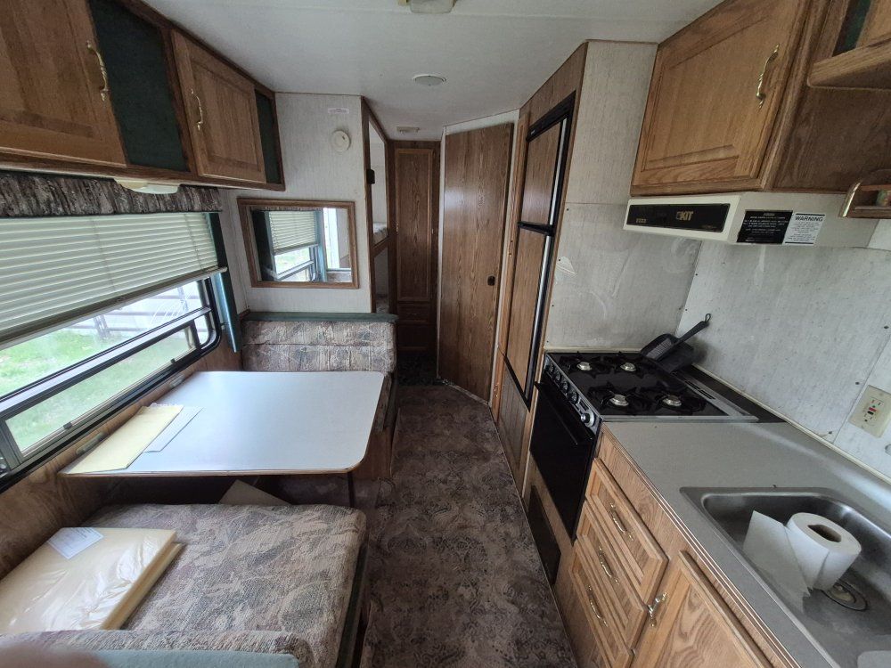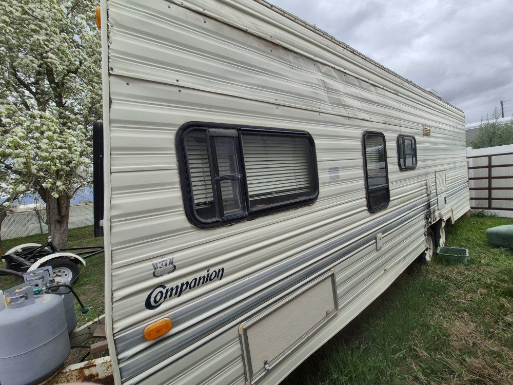 1993 kit companion sunchaser. sleeps 7 decently. bunk beds table makes into bed and so does couch.