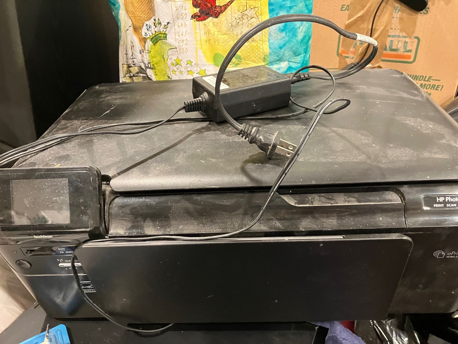 VenmoFor sale is 2 HP all in one printers. The white one need ink replaced or refilled and the black one has error message that the ink tray is open. They both come with power cords, the white one with drivers, manuals and usb cords. $10 for both.