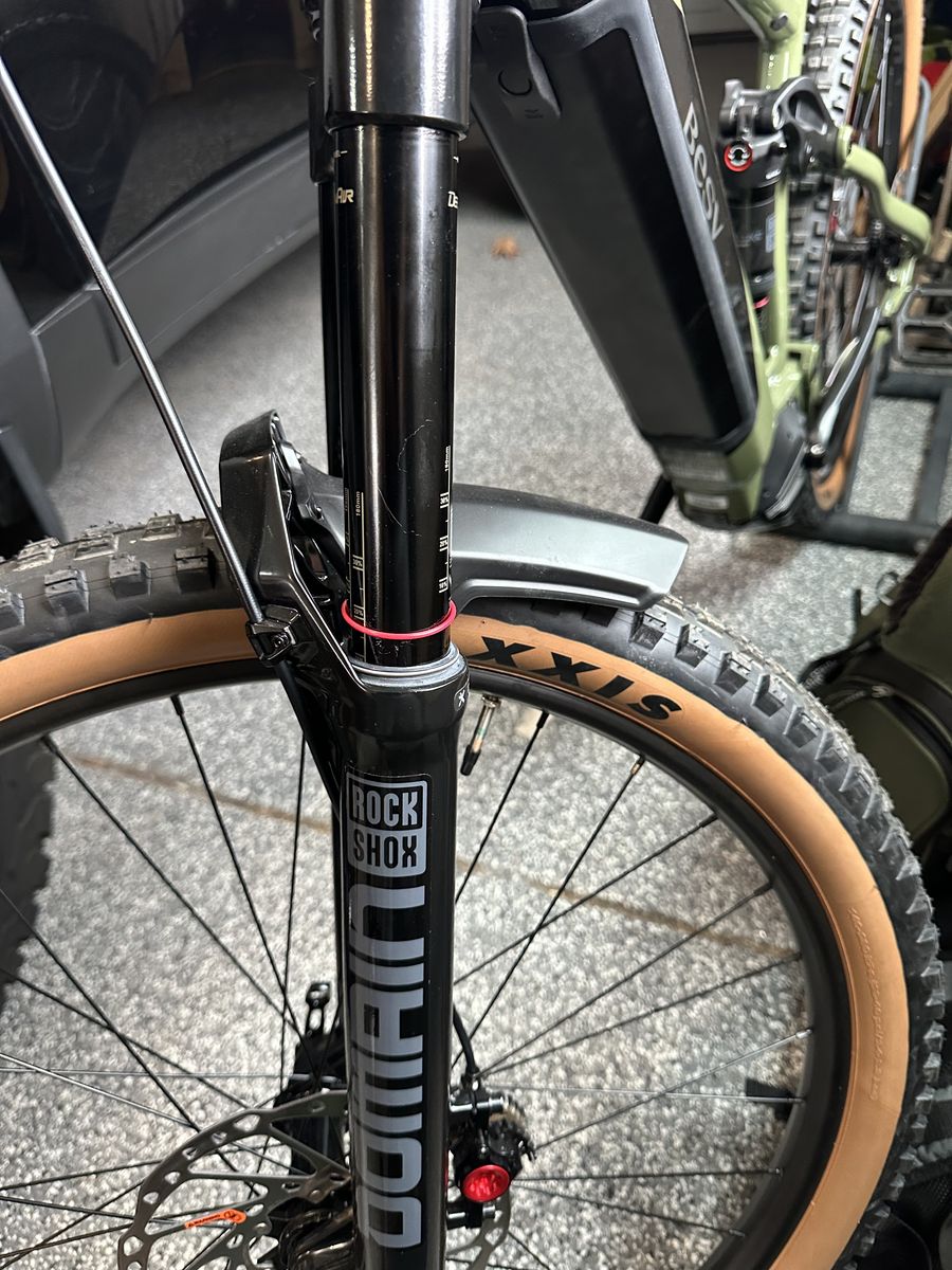 This is a premium eMTB designed for trail riding with a mid-drive Shimano motor, integrated battery, and full RockShox suspension front and rear. Smooth, powerful pedal assist and excellent climbing ability.