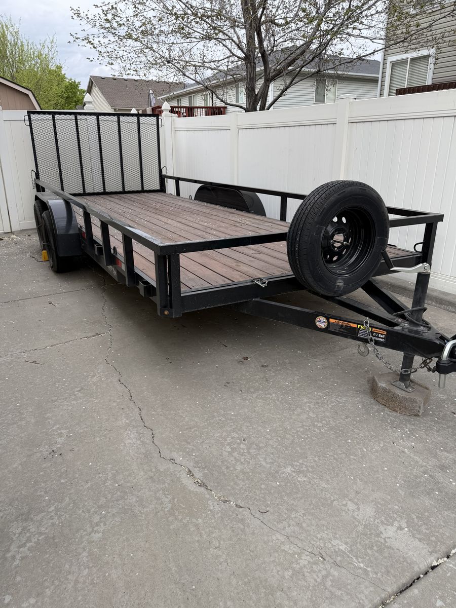 2023 18 foot Workhorse utility trailer in great condition. Tires are good and 80 mile an hour rated. I will let the hitch locks, tiedown straps, and everything go with it.