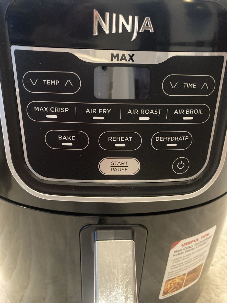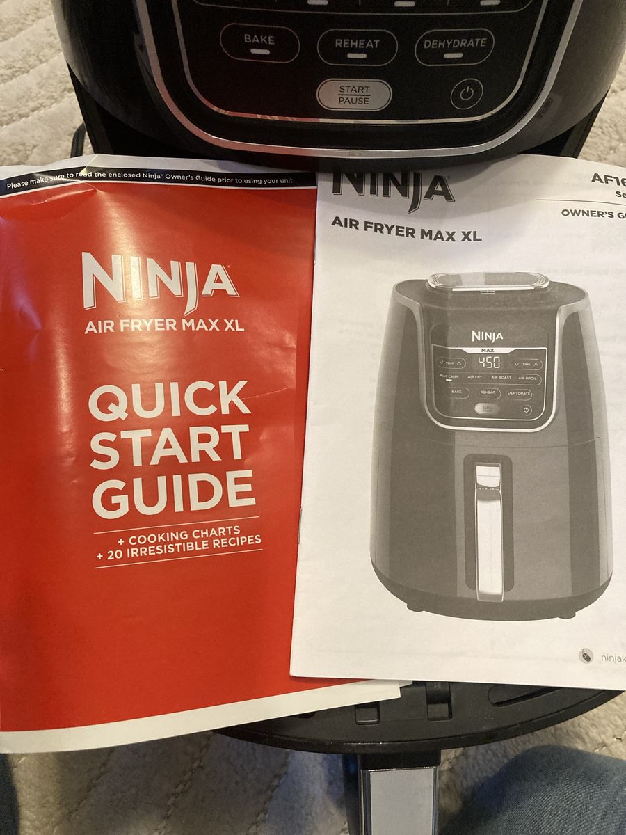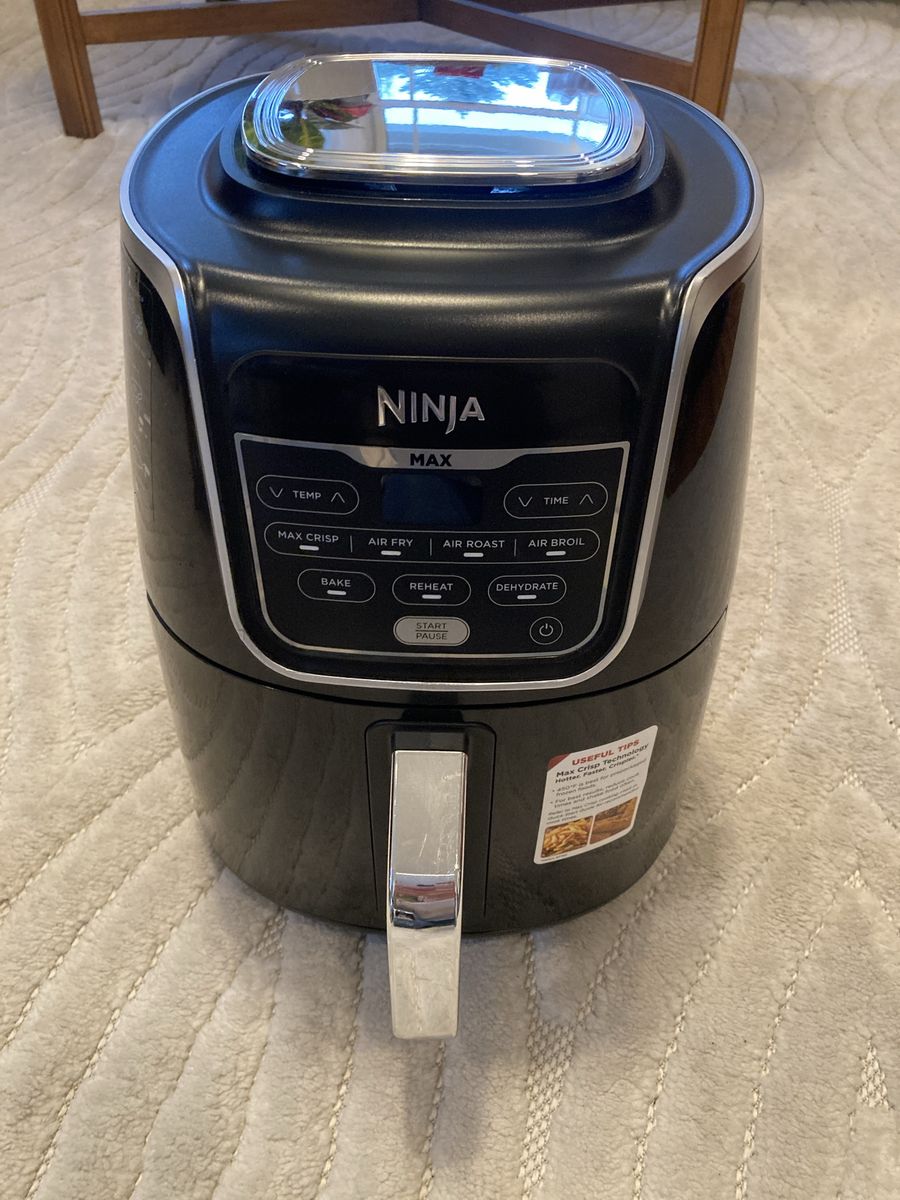 Ninja air fryer max xl like new . Black automatic shut off- built In timer 14,75 height c 11 in wide Bake broil dehydrate reheat & roast. I think we used it once