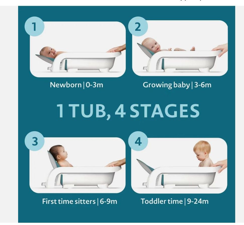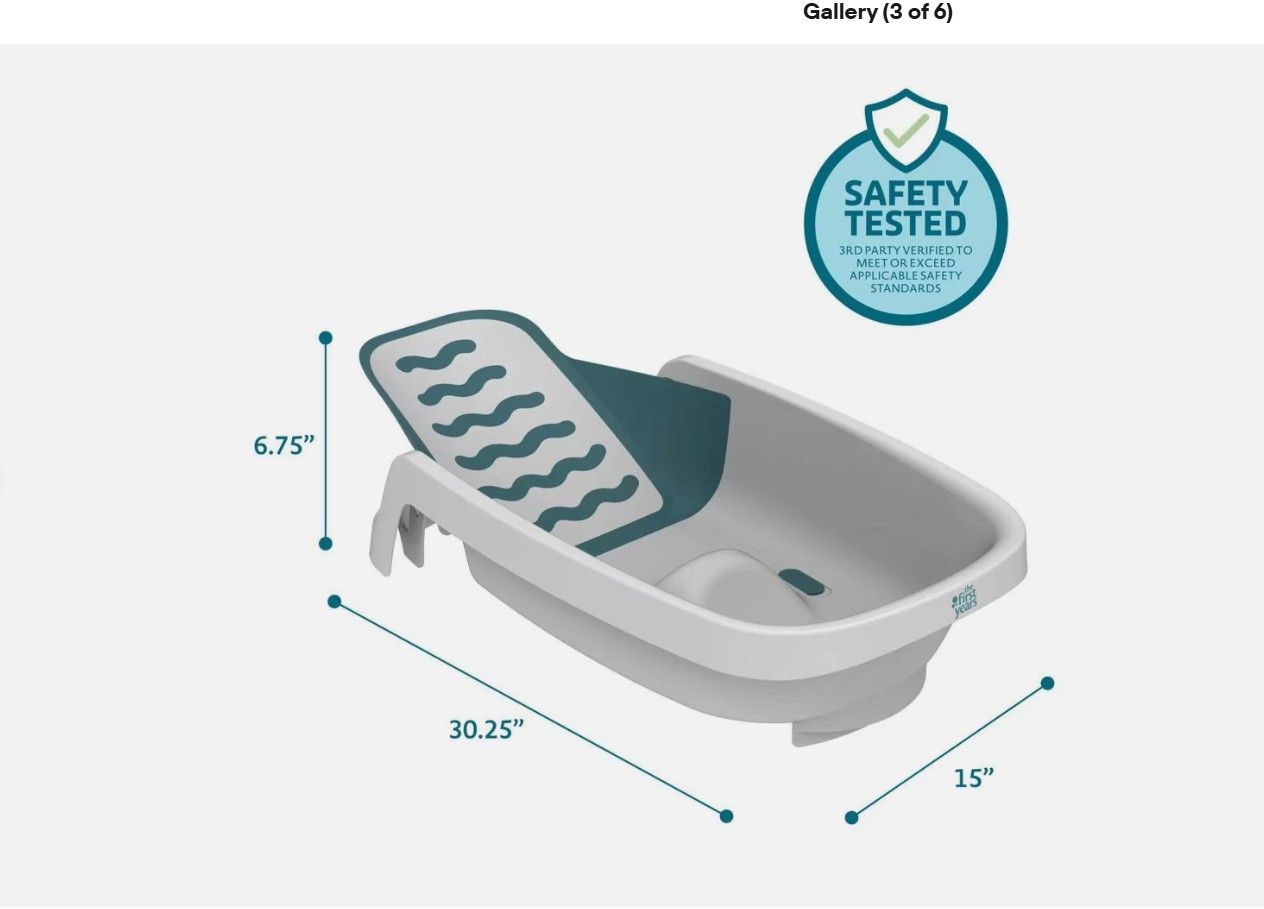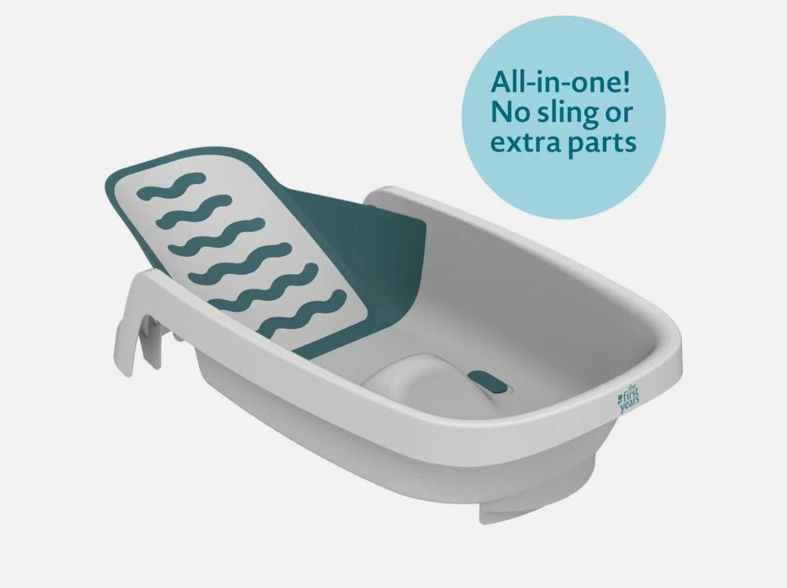 The First Years Sure Comfort 4-in-1 Reclining Bathtub is like a mini lounger that your baby can relax in…and you can relax about using. The ingenious recline adjusts in just seconds with an intuitive design that easily grows with your baby through four different stages. Newborns are securely supported during their first baths by the low-level recline. No complicated slings or extra parts needed! As baby grows, the mid-level recline and bum bumper help prevent slipping. For first-time sitters, the top-level recline gives them the support they need to keep them steady as you get them squeaky clean. Through these first three stages, the soft sides and ripple design provide a comforting feel that mimics skin-to-skin contact. During this time, the unique recline also gives baby’s legs more freedom of movement as they grow. For the fourth stage, toddlers up to two years old have a comfy seat and plenty of room for fun sitting up on the opposite side of the tub. This versatile, all-in-one baby bathtub can be used in most sinks or the adult tub and makes a great addition to a baby shower registry.