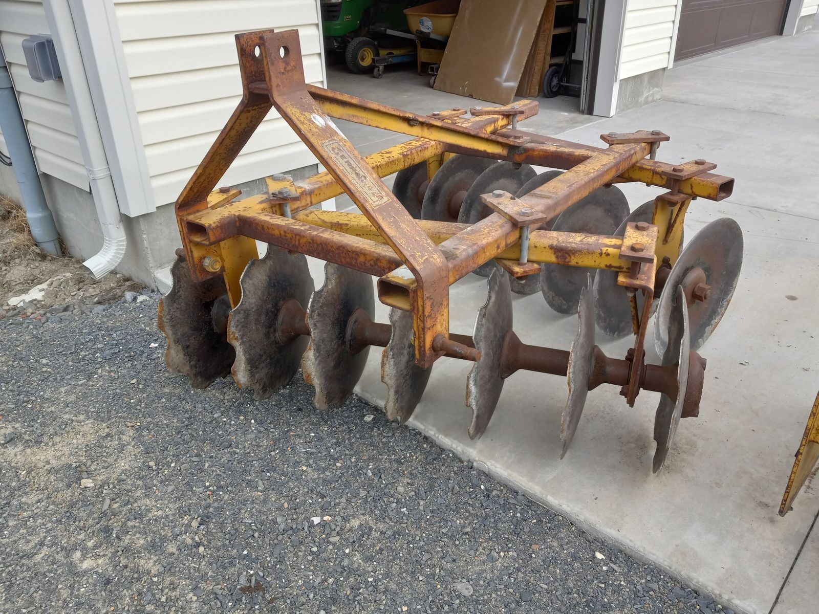 4' disc harrow for cat1 3-point hitch. Solid! Works great.