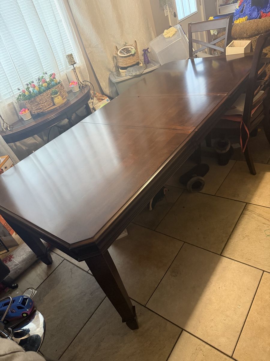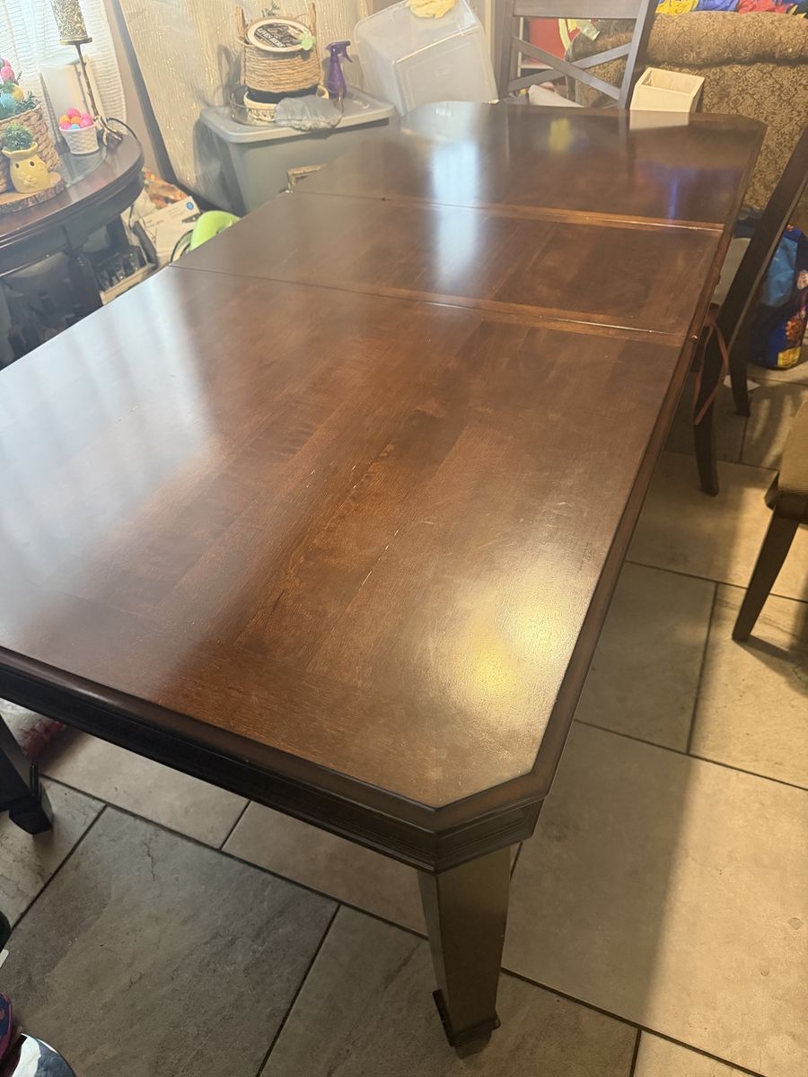 ApplePaySelling this good size dinning table comes with eight chairs and you can extend the table with the middle piece that I have as well it comes on and off
