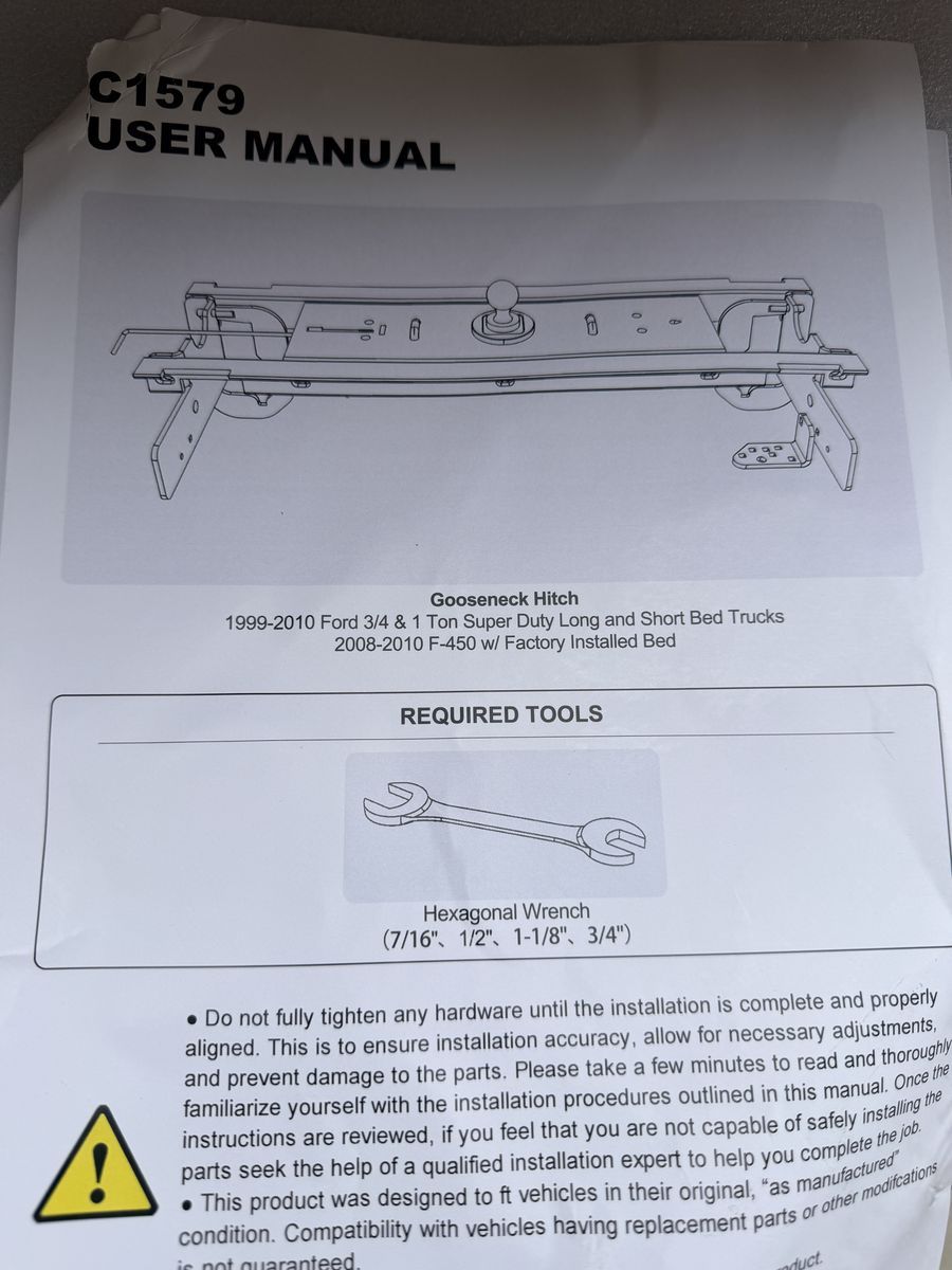 This gooseneck hitch with thick steel plates and an integrated ball handles up to 30,000 lbs GTW and 7,500 lbs VTW ideal for hauling horse trailers, heavy equipment, or 5th wheel RVs with reliable strength Your Last Hitch: The Gooseneck hitch kit s powder-coated body & chrome ball fight rust and corrosion, ensuring long-lasting performance in rain, snow, even in heavily corroded areas Easy to Install: This Goose neck hitches for trucks uses existing factory holes, no drilling or welding. A single person can complete the installation independently in a few hours with basic tools Hide Away Like Factory Bed: Simply flip the gooseneck hitch ball down to return it to the factory bed, instantly freeing up maximum space in your truck bed for cargo Perfectly Matches Your Vehicle: This gooseneck hitch engineered exclusively fit for 1999-2010 Ford F250 & F350. Compatible with their 6-1/2 Foot and 8 Foot Beds without puck style attachment points.