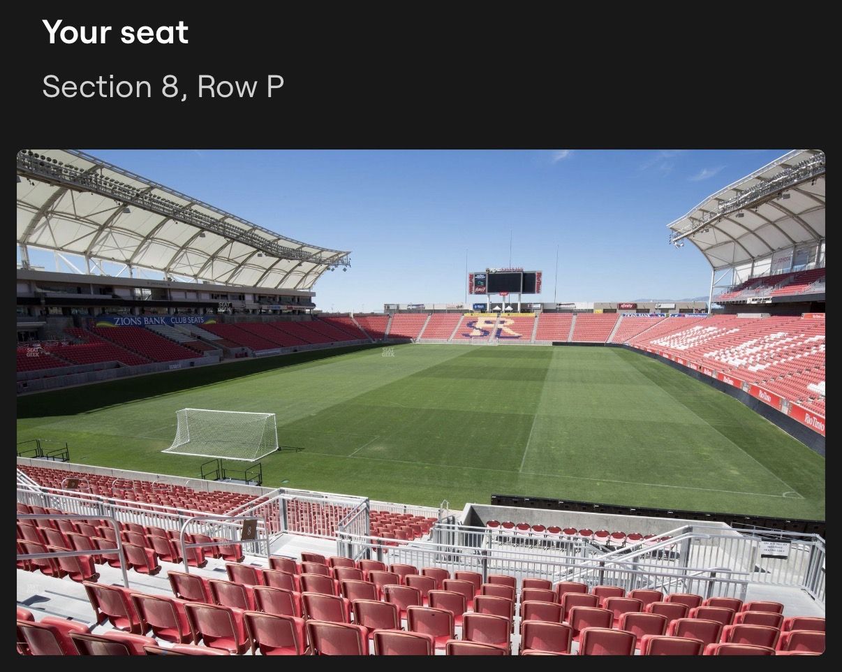 VenmoI am selling our RSL vs InterMiami tickets 4/22 because my husband will be out of town for work. These are fabulous seats at a great price! Close to all the action (La Barra) but not standing section- see Messi up close and personal from the corner! Section 8 Row P two tickets for $400 each transfer via SeatGeek