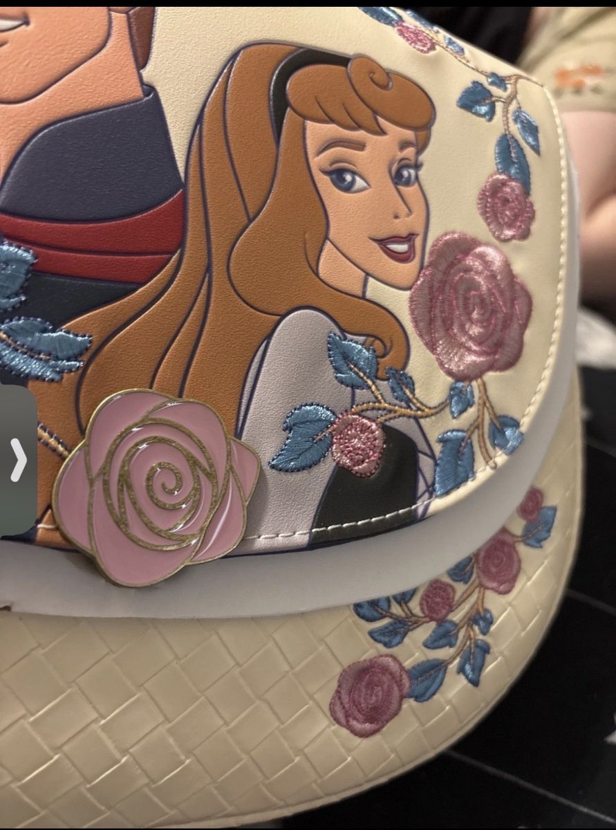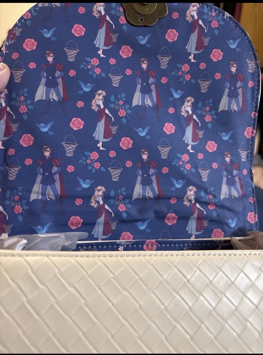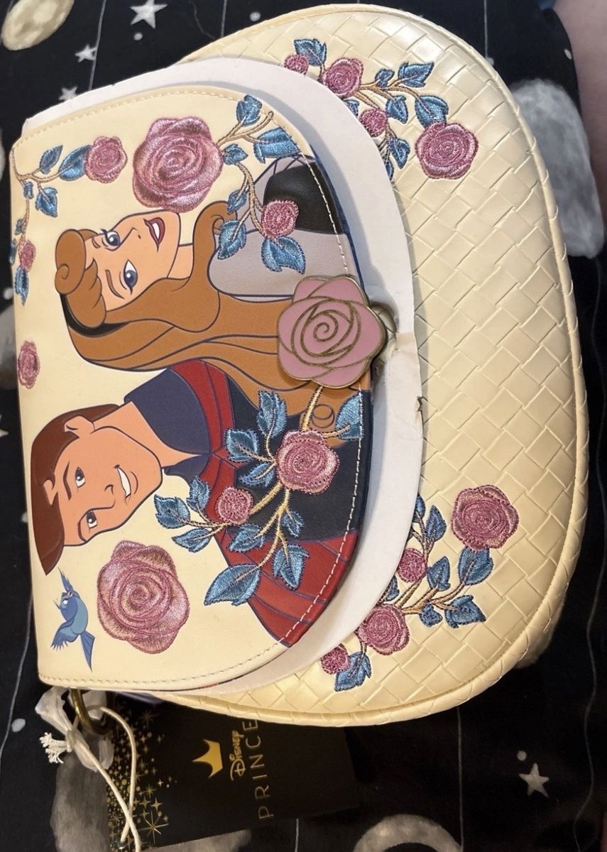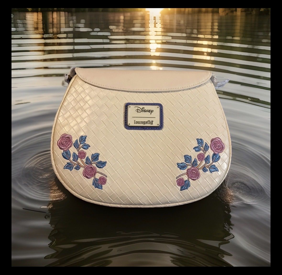Zellewe are delighted to offer a most romantic accessory for your next royal engagement. This Loungefly Sleeping Beauty Crossbody is not merely a satchel, but a tribute to the legendary romance of Princess Aurora and her noble Prince Phillip. THE ROYAL SPECIFICATIONS: • A Portrait of Love: Centered upon the front flap is a charming depiction of the Princess and her Prince, embossed in timeless detail. • The Briar Rose Accents: The bag is framed by exquisite embroidered roses, reminiscent of the hidden cottage in the woods. • Woven Artistry: The body features a sophisticated woven faux leather texture, providing a depth of design rarely seen in common markets. • Royal Adornment: A delicate enamel rose charm hangs from the front, acting as a signature of the "Briar Rose" herself. • Versatile Carriage: Includes a removable and adjustable strap, allowing it to be worn as a modern crossbody or carried
