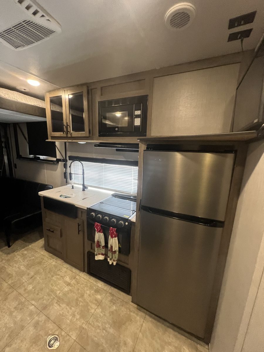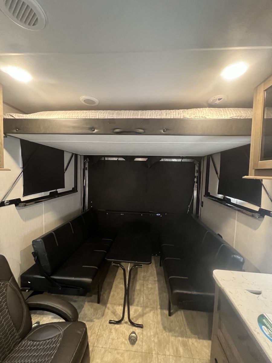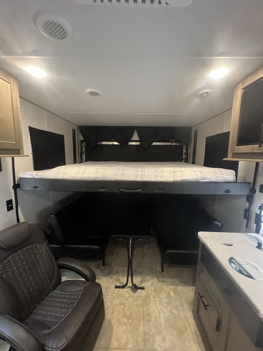 Solar panels Includes Firman generator Stabilizer hitch included Freshwater tank 90 gallons Fuel tank never been used Sleeps six comfortably Garage dimensions: 83” Wide 77” High 136” Long
