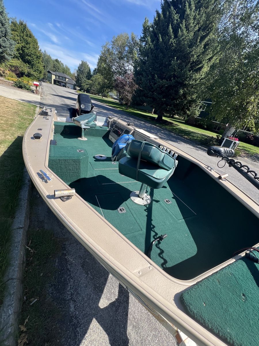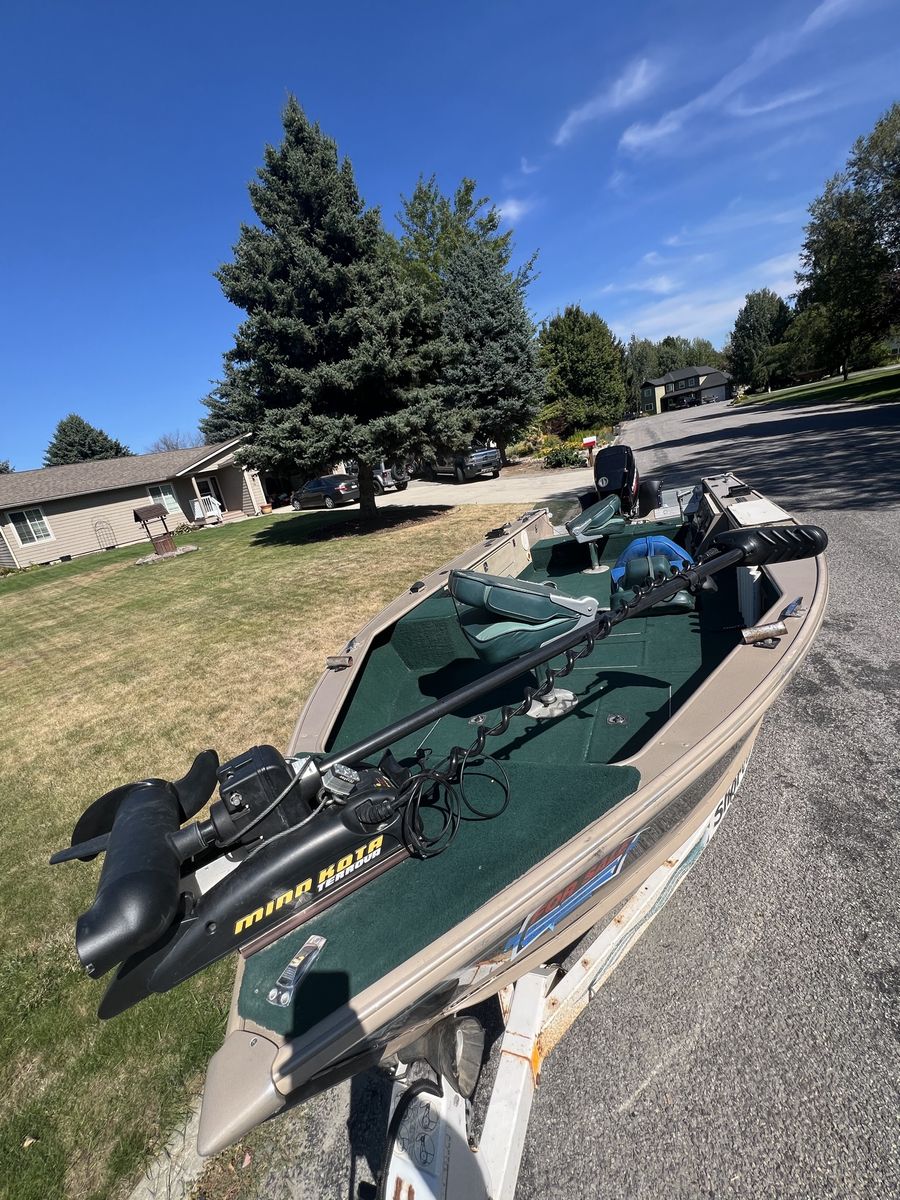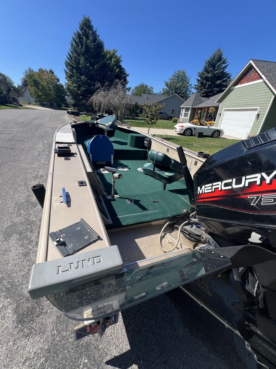 1997 Lund Pro V 1775 Tournament Series, 75HP Mercury hand tiller with a Minn Kota Terrova with remote and foot pedal. I have the remote and foot pedal. Has two live wells and live bait well that I used for storage. This boat is perfect to fish for bass, walleye, and salmon on rivers or lakes. I installed wave wackers on the back for back trolling and keeping rouge waves from coming over. The main motor has a trolling plate as well. The boat has been fully winterized.