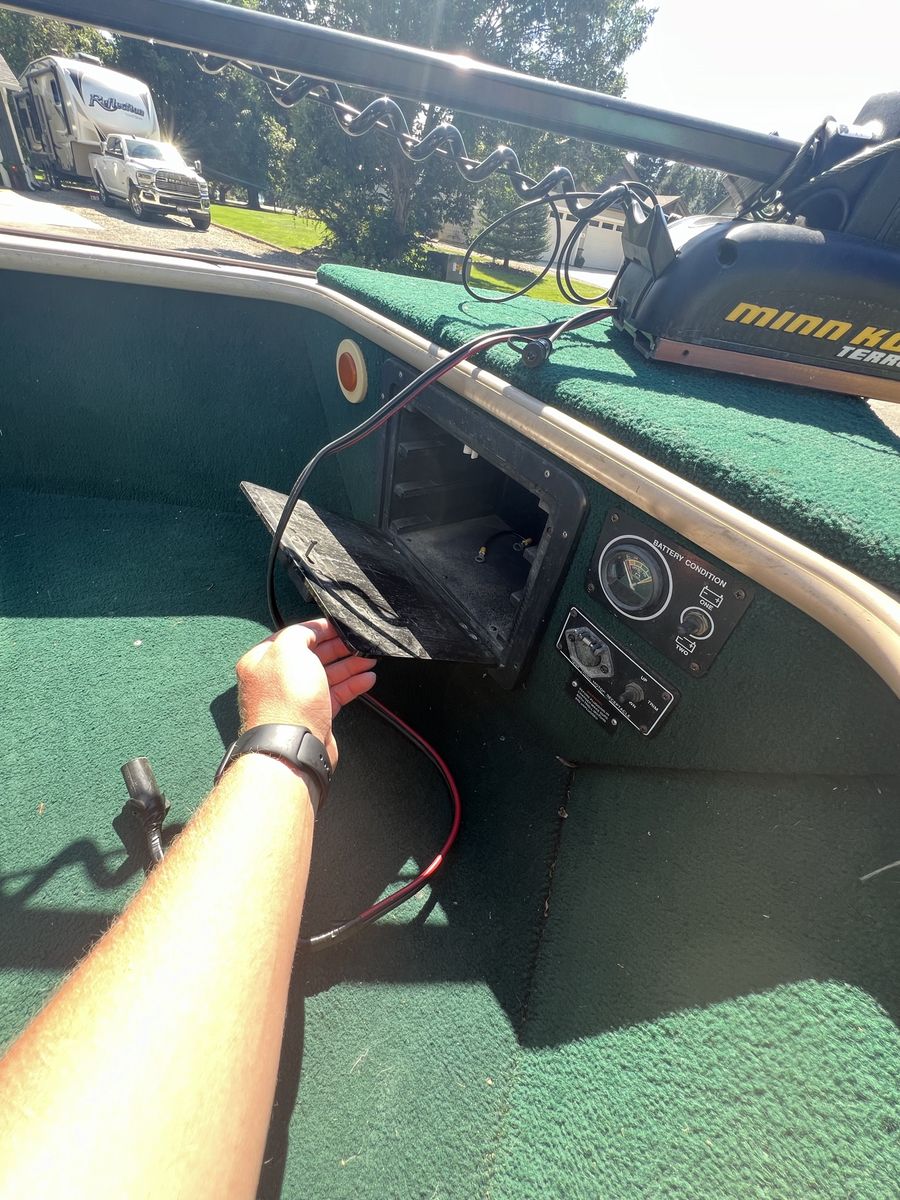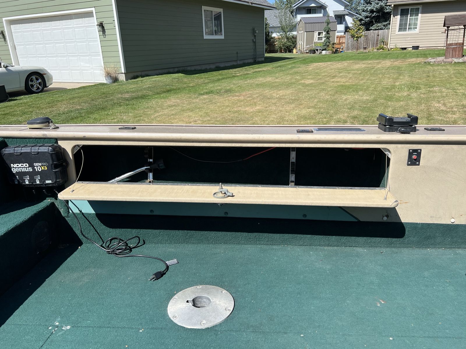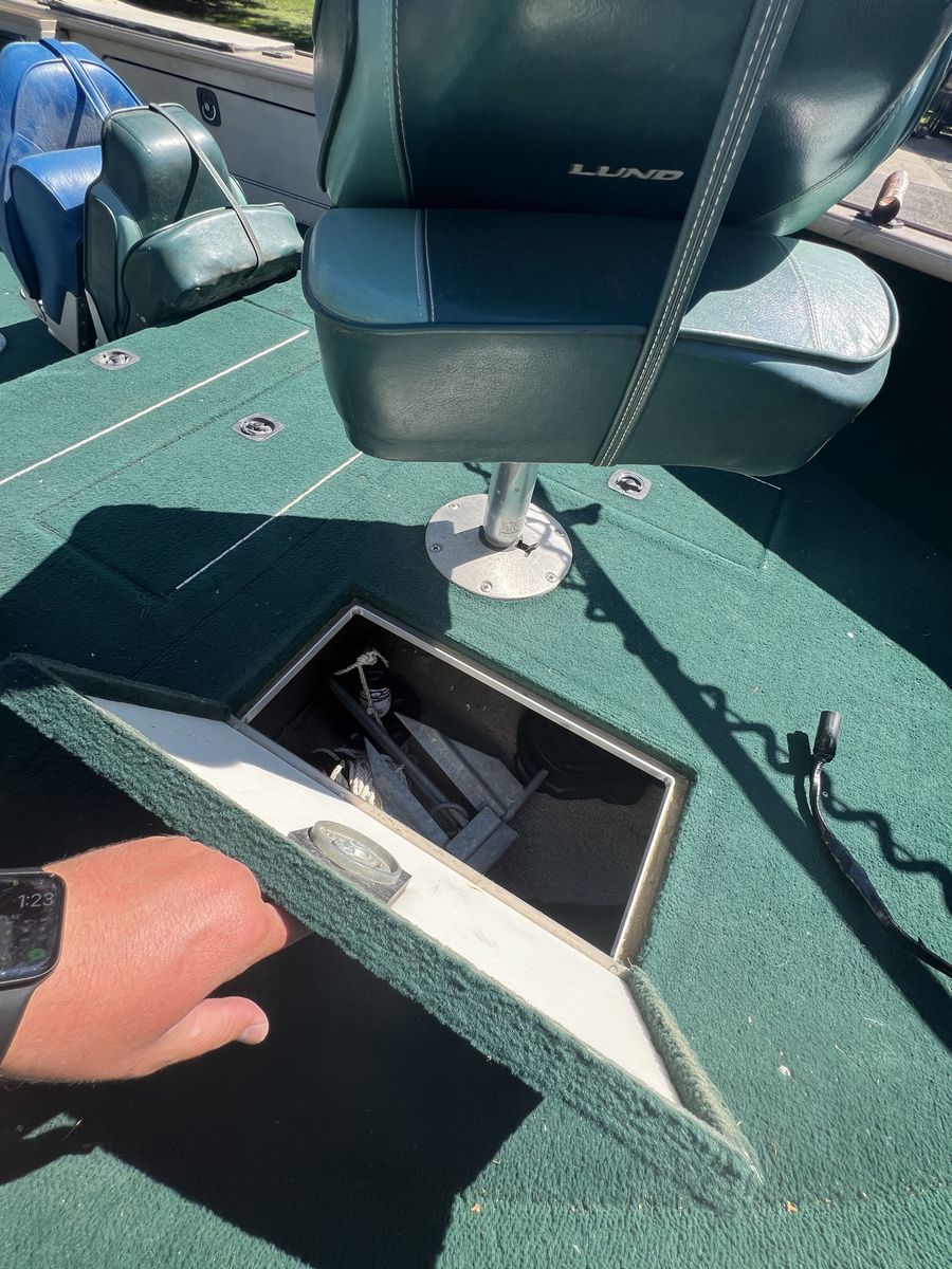 1997 Lund Pro V 1775 Tournament Series, 75HP Mercury hand tiller with a Minn Kota Terrova with remote and foot pedal. I have the remote and foot pedal. Has two live wells and live bait well that I used for storage. This boat is perfect to fish for bass, walleye, and salmon on rivers or lakes. I installed wave wackers on the back for back trolling and keeping rouge waves from coming over. The main motor has a trolling plate as well. The boat has been fully winterized.