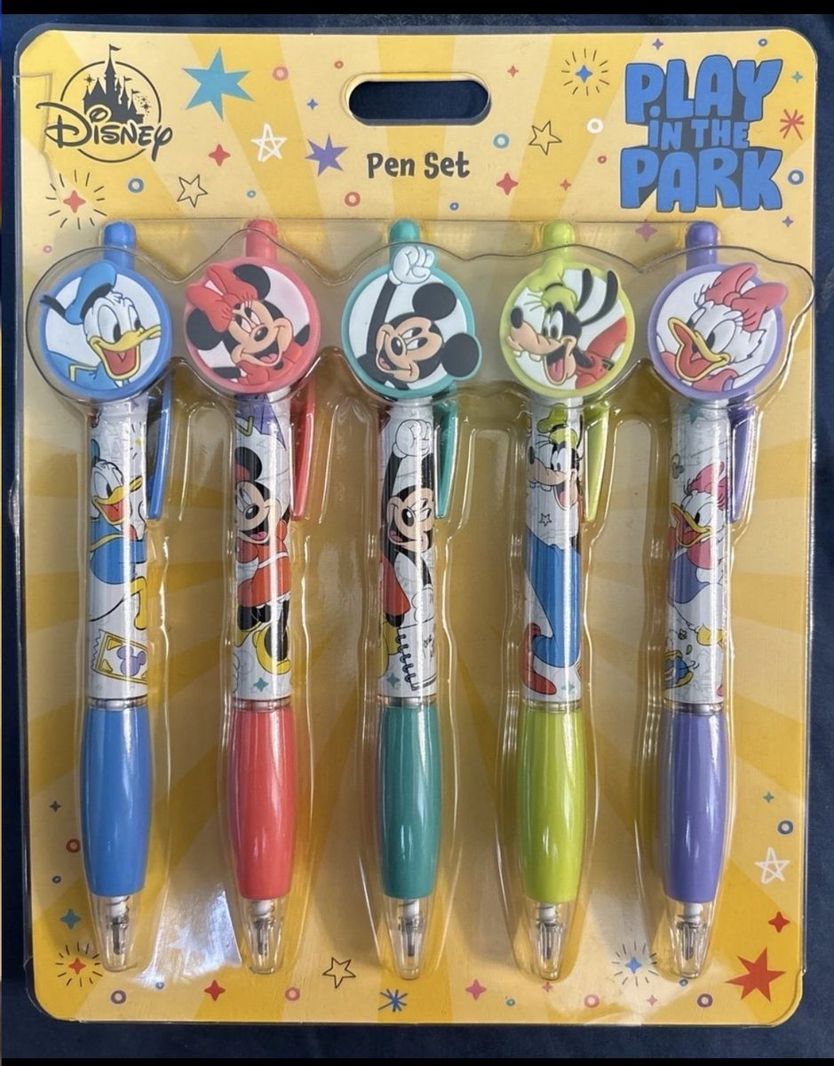 ApplePayAdd some Disney magic to your desk or bag with this authentic Disney Parks "Play in the Park" Pen Set. This 5-pack features the "Sensational Six" in vibrant, park-inspired outfits. Each pen includes a colorful character topper and matching barrel graphics. Set Highlights: • Mickey Mouse (Teal) • Minnie Mouse (Pink/Red) • Donald Duck (Blue) • Goofy (Green) • Daisy Duck (Purple) These were purchased directly from the Disney Parks and are perfect for planning your next vacation, scrapbooking, or gifting to a fellow fan. The set is brand new, sealed in its original decorative "Play in the Park" carding.