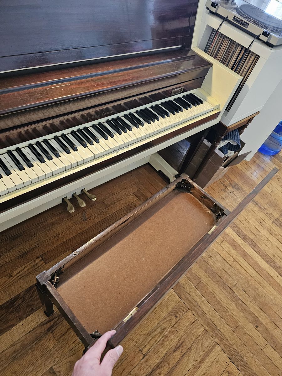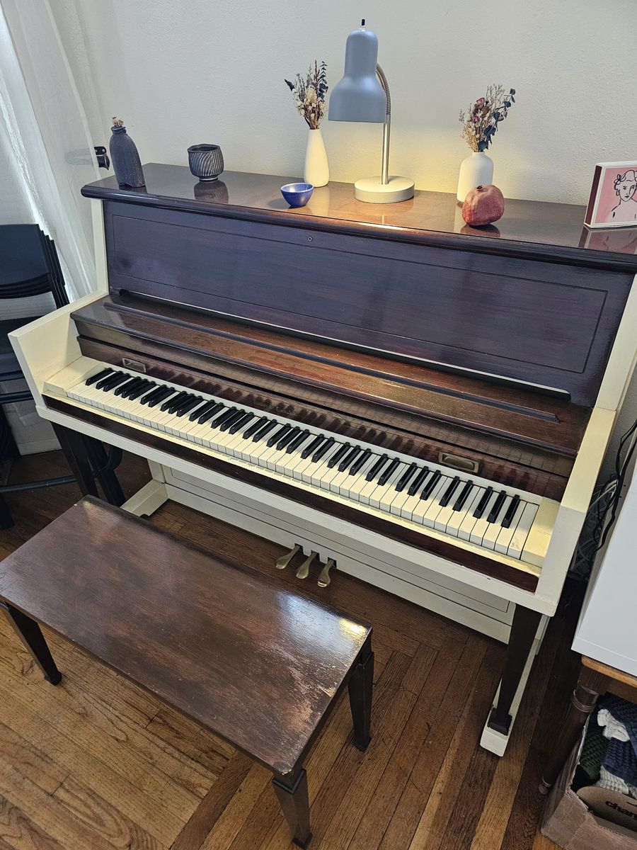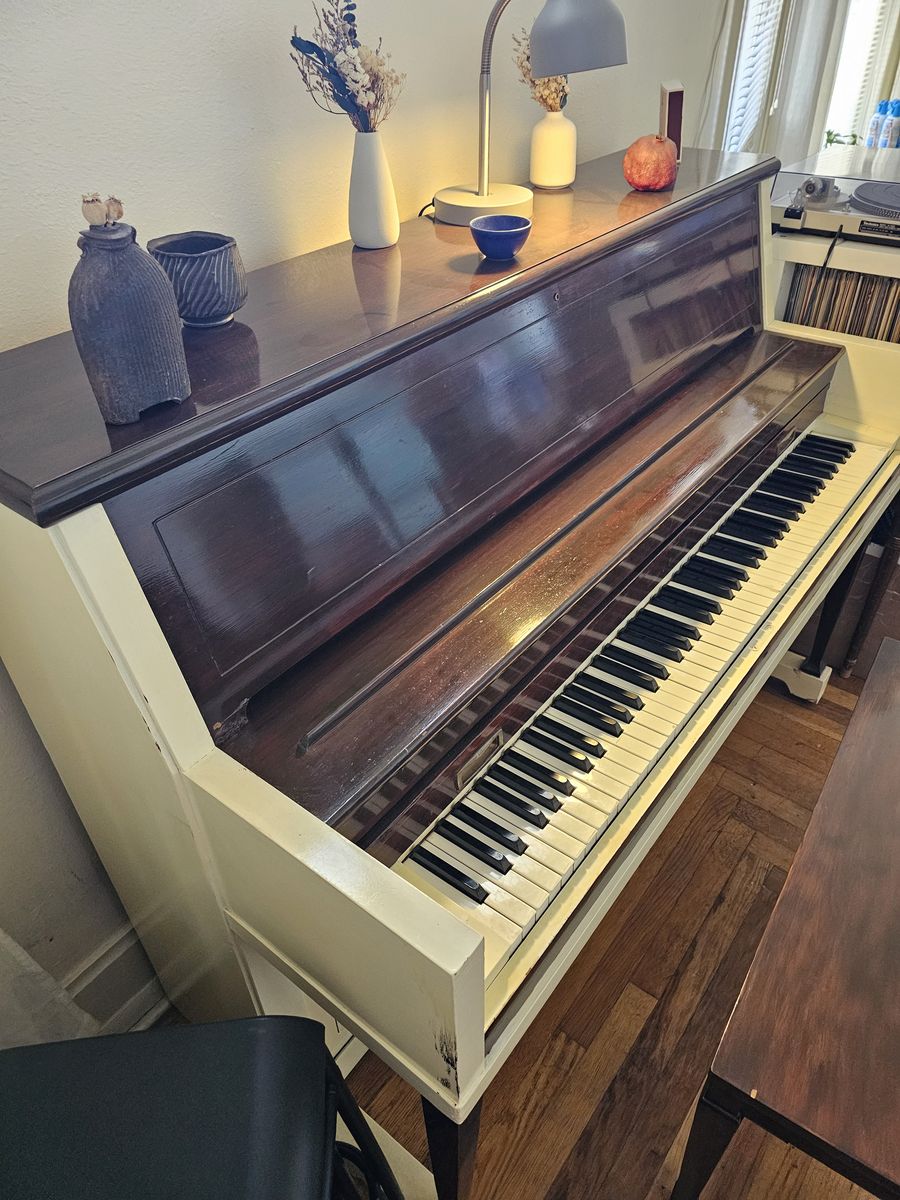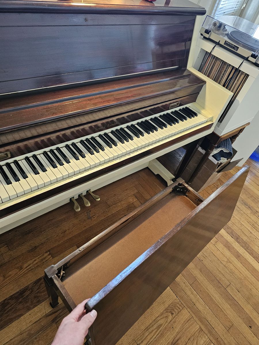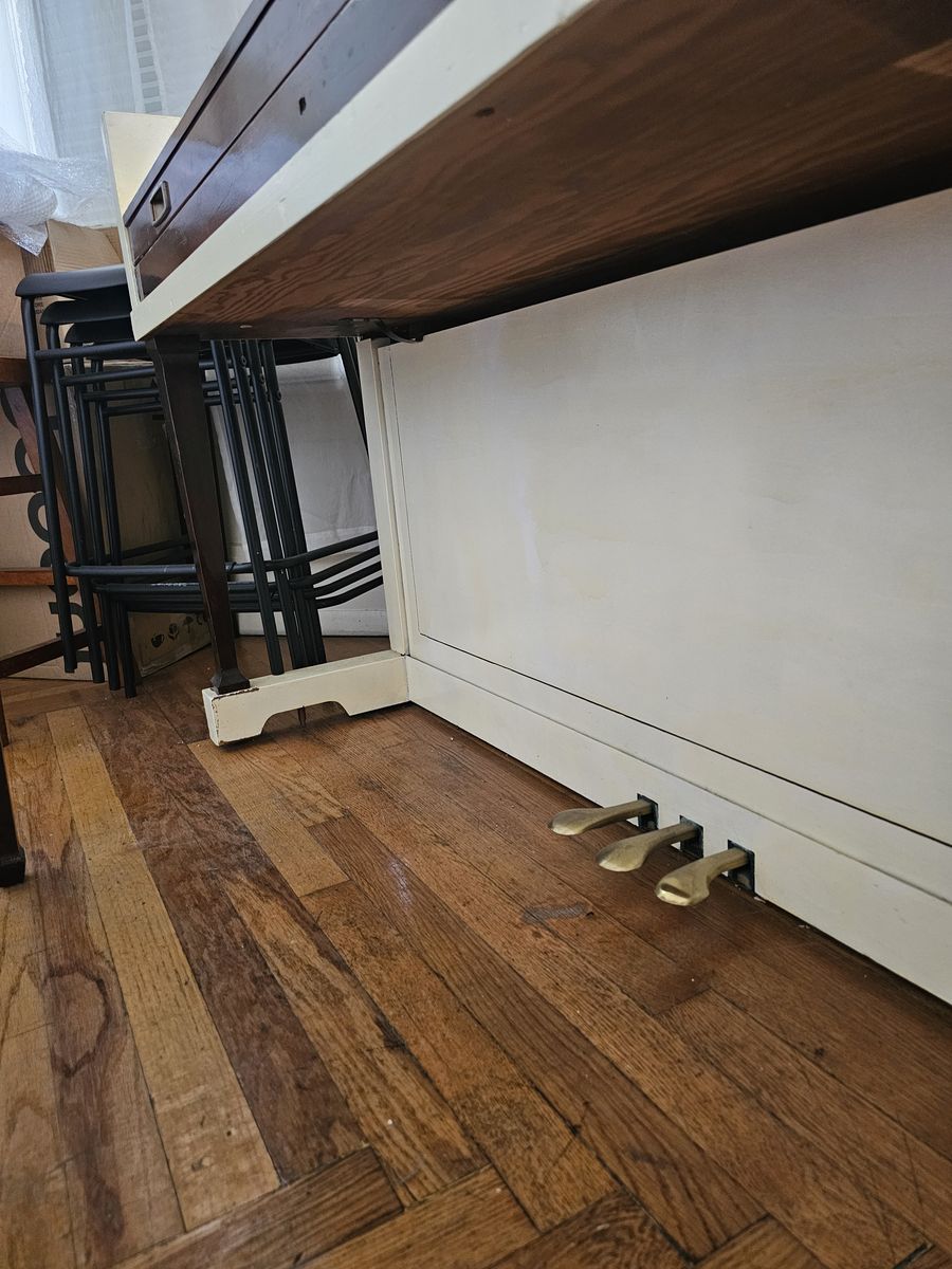 PayPalPiano sounds terrific, and is rarely used but is in superb condition, including the flip-top storage duet bench. Wouldn't it be sad without its bench? You're welcome to come play it anyday before 9:00 pm. It has visible dust on it in the photos but the key cover was always closed. A great deal in this codition as these are valued between $500 and $2000. Would like to sell it before I move in a month. Buyer will have to hire movers to move it from the Lower Aves. It's already right by the front door.