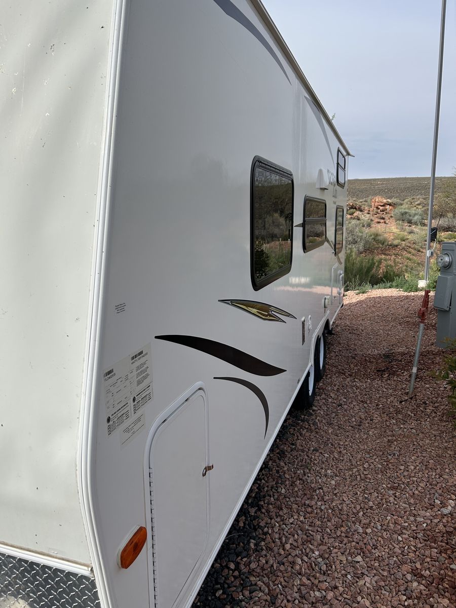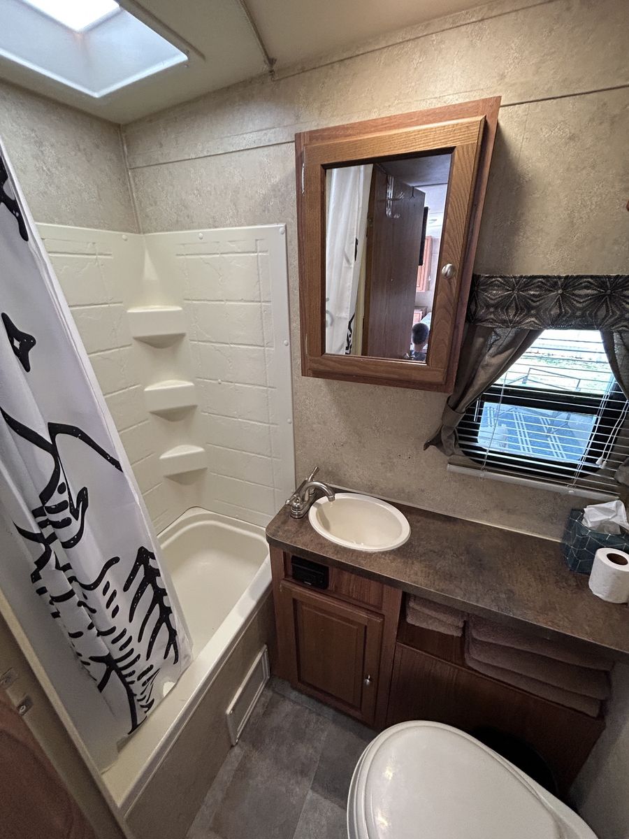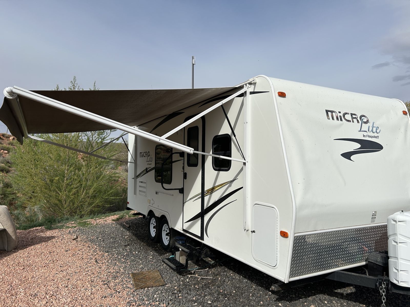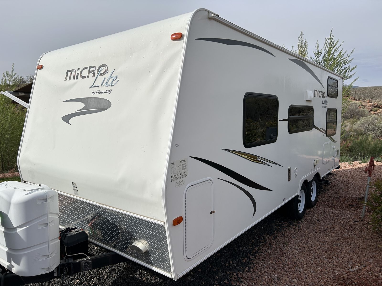 Dry weight is 3805 pounds. Tires are 2-3 three years old. Roof is in great condition. It’s never had any leaks. Awning is in great condition as well.
