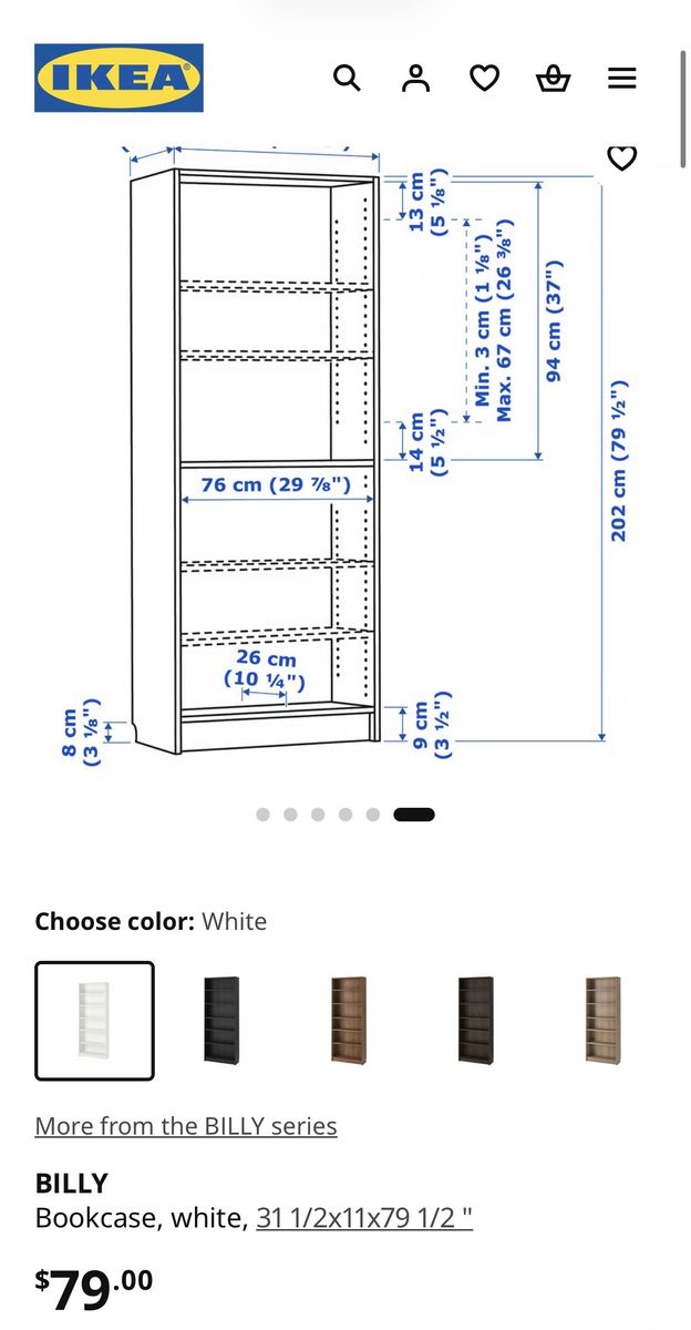 VenmoIKEA White Billy Bookcase. 79.5" tall. Brand new-- still in box, unopened. $79 at IKEA.