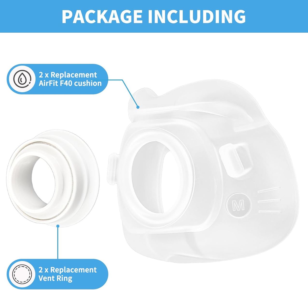 VenmoBrand NEW cpap replacement cushions for the AirFit F40. These are size medium. There are 2 in this pack. The brand is Wagleriz.