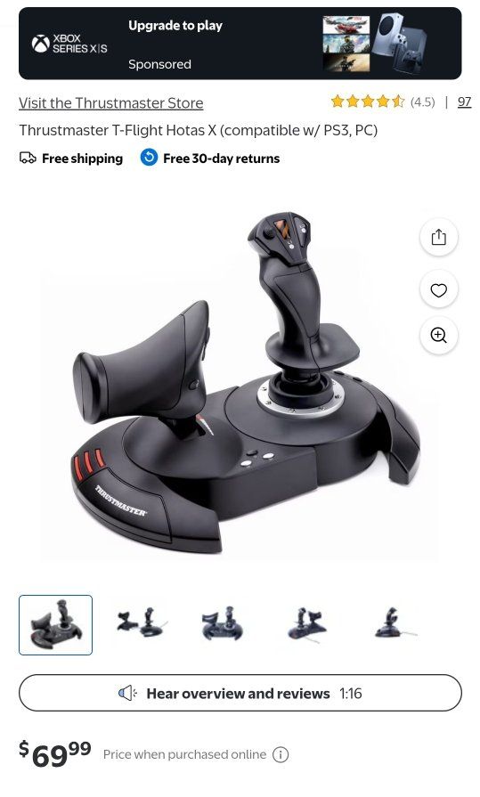 The T.Flight HOTAS X is a complete accessory that includes a high-precision joystick and a detachable throttle that can be used detached or attached to the joystick, depending on player’s preferred position (desk, couch, cockpit…). This joystick set is designed for any budding pilots who wants a two-handed set for flight simulation. The Plug & Play HOTAS is fully compatible with all flight simulation games for PC and features a unique ergonomic design that allows it to adapt to any type of game: dogfights, civil or commercial flights, space adventures, etc.