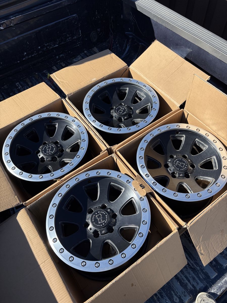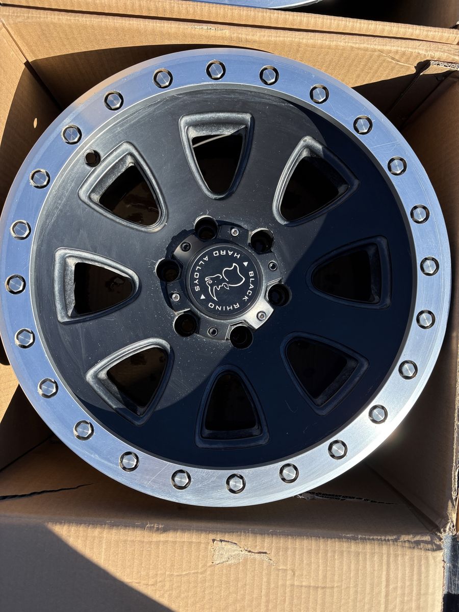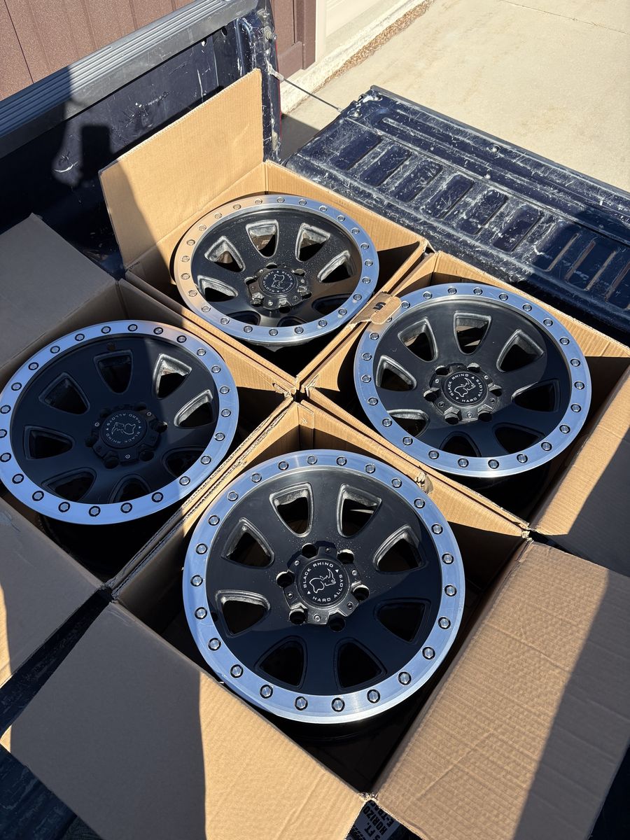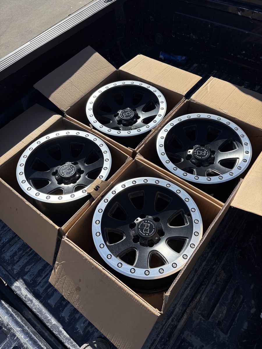 Fake beadlocks 17x9.0 I believe 6x5.5 lug pattern