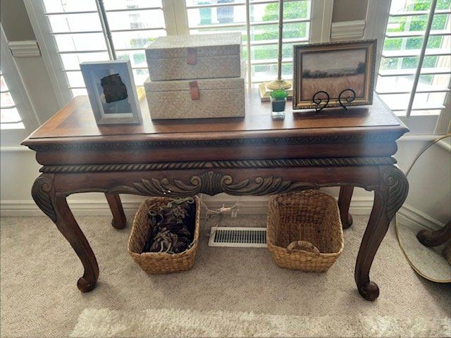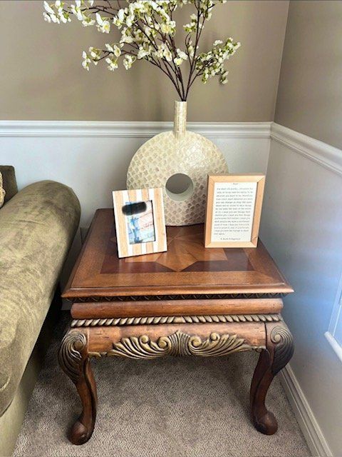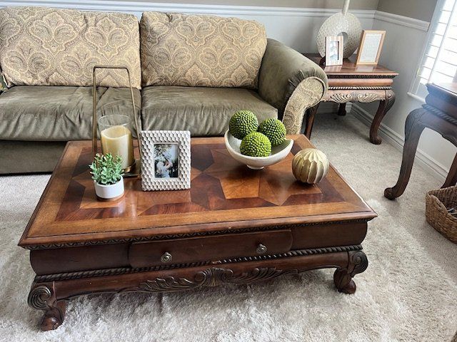 Complete set of Custom Sofa, Solid Wood End Table, Solid wood Coffee Table and Solid Wood Sofa Table all for $175