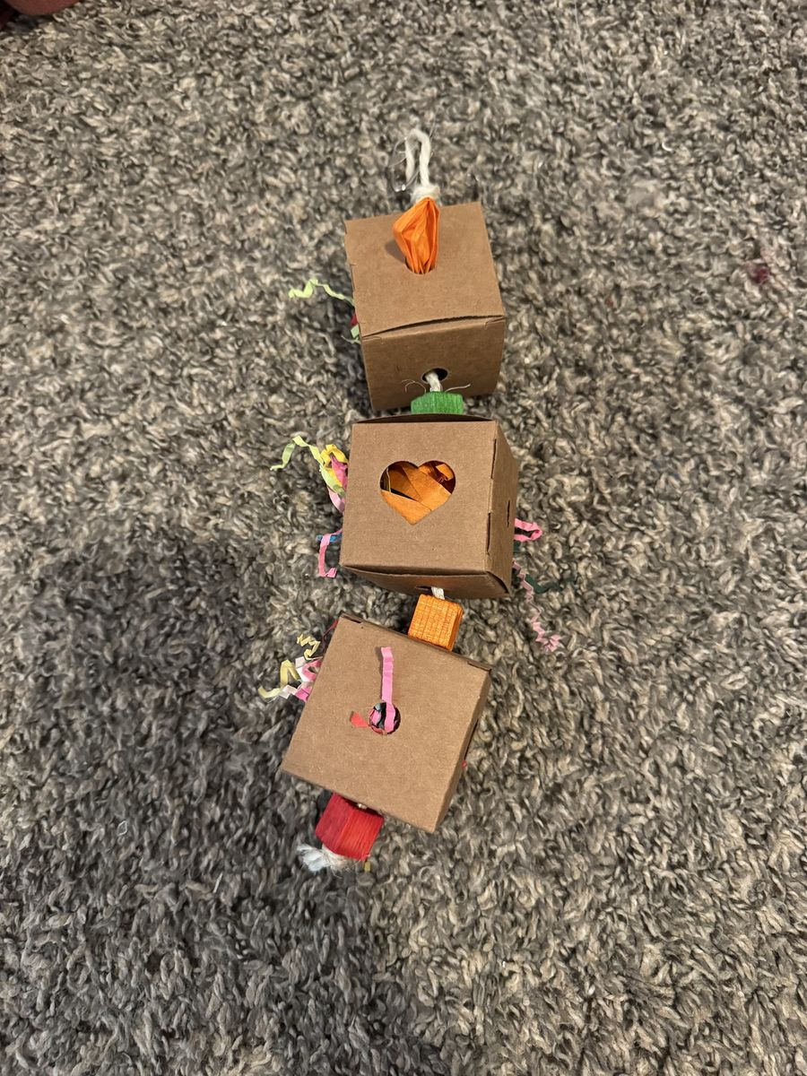 ApplePay5 bird toys, 4 of them are shareable, then the 5th is a little ball. Best suited for smaller birds like parakeets