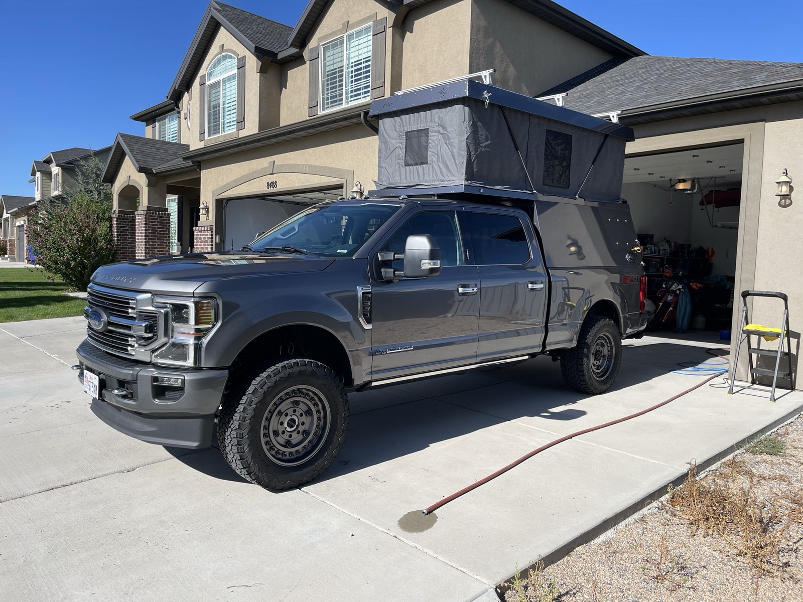This is a great topper/pop up tent built specifically for a F-250 or F-350 (6-3/4 foot bed) which was color matched for my 2022 Charcoal Gray truck. Can be repainted to match your truck. Includes Batwing awning, hatch, roof fan/vent, solar, lion energy battery, furnace, side window, roof rack etc. refrigerator and camp kitchen also available. Over $30,000 invested, asking $17,500 text 801-310-0005 See Less