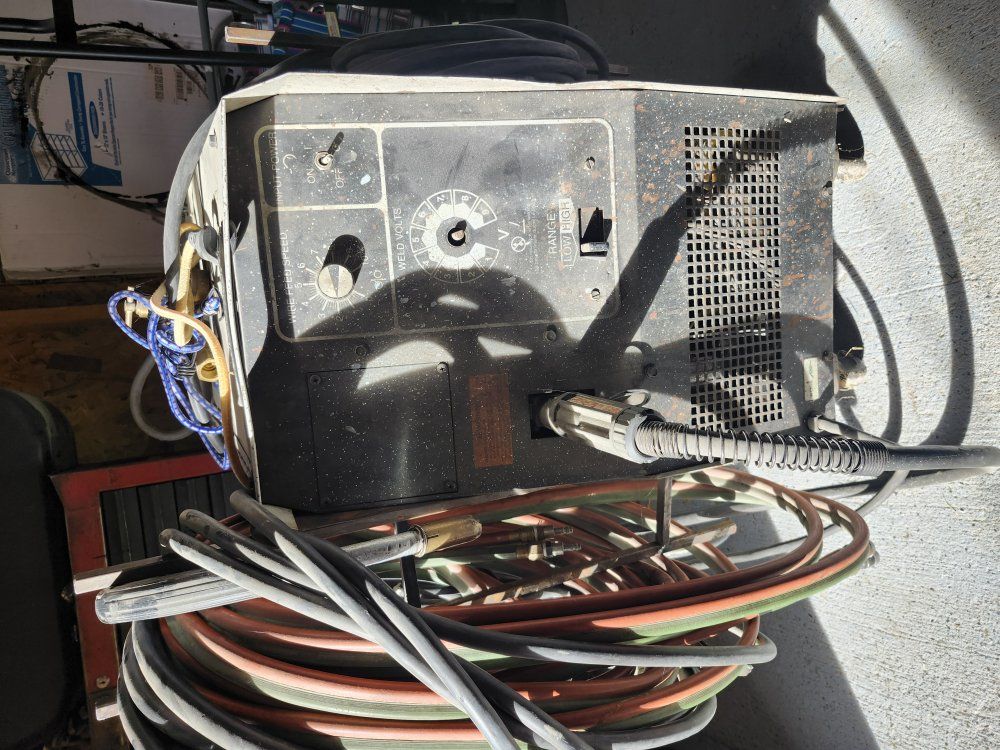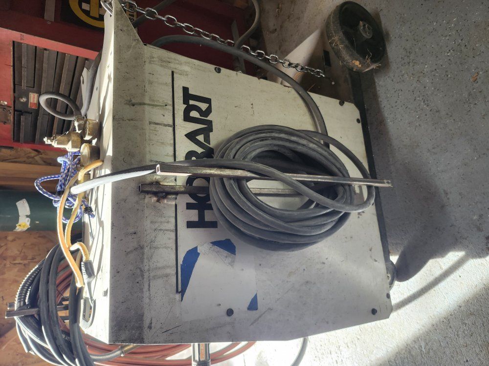Hobart shop welder on roller cart
