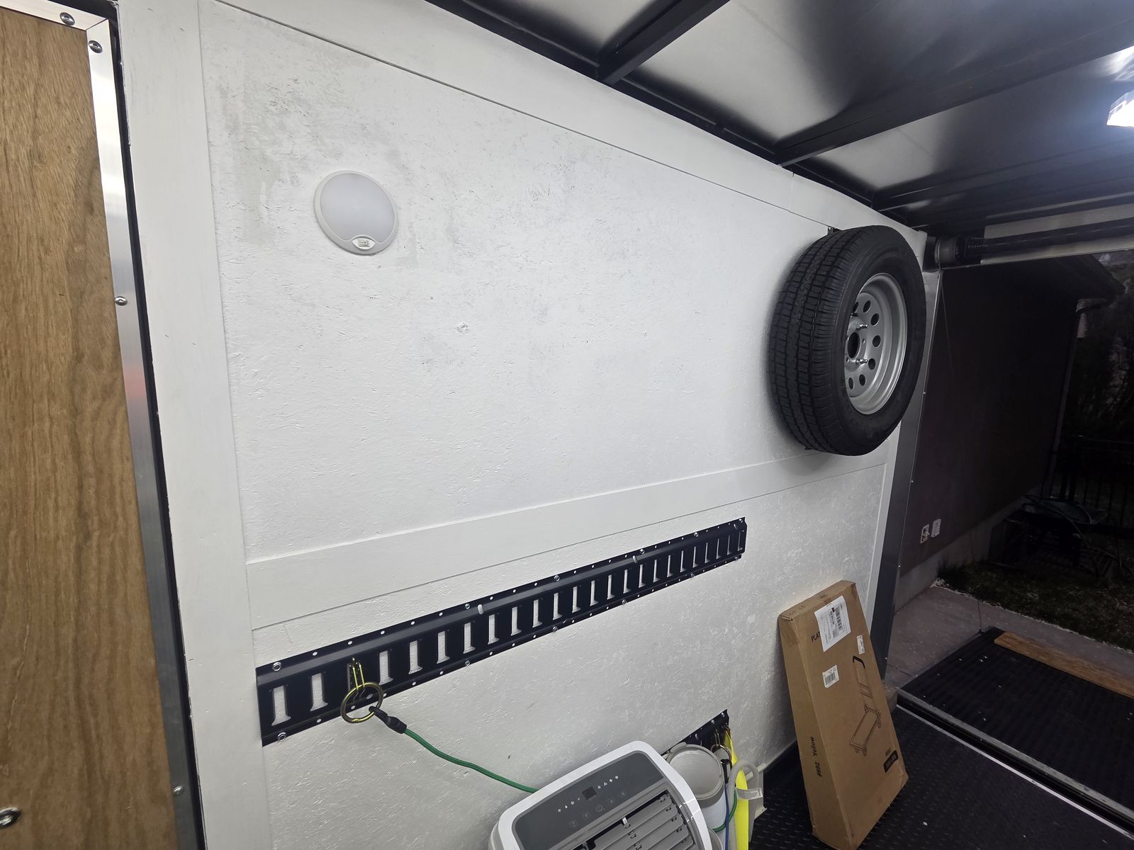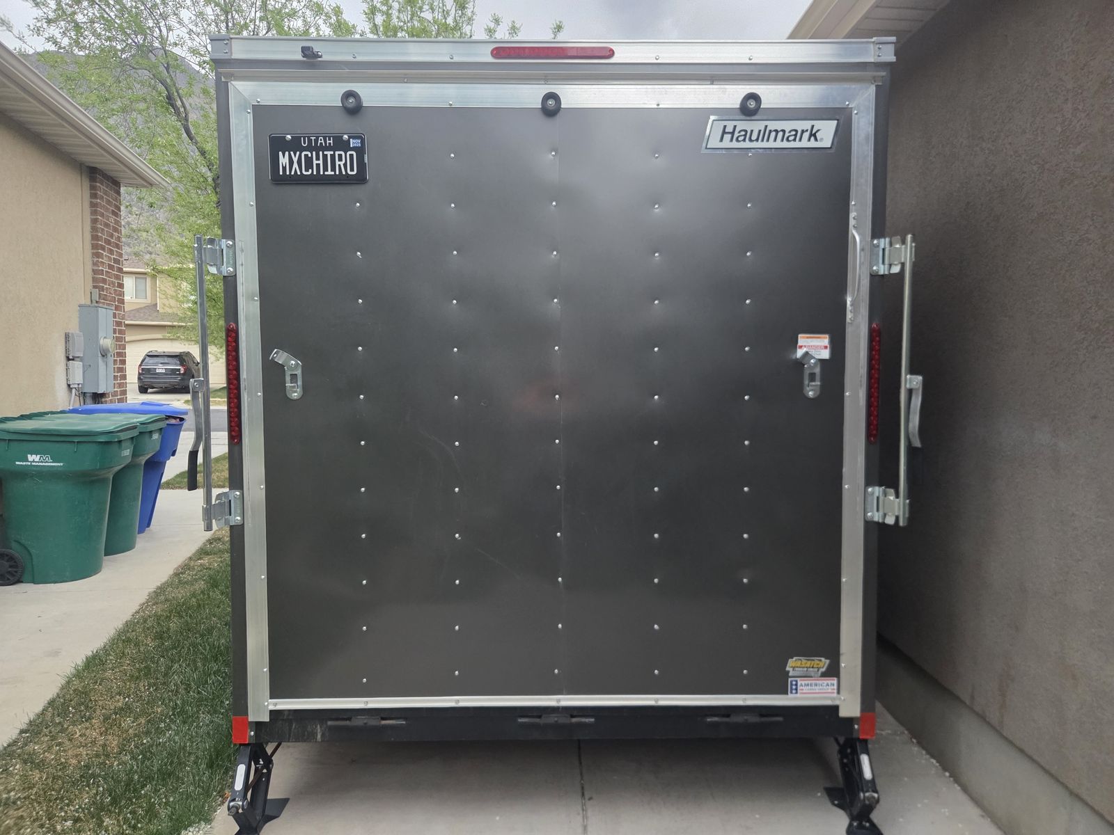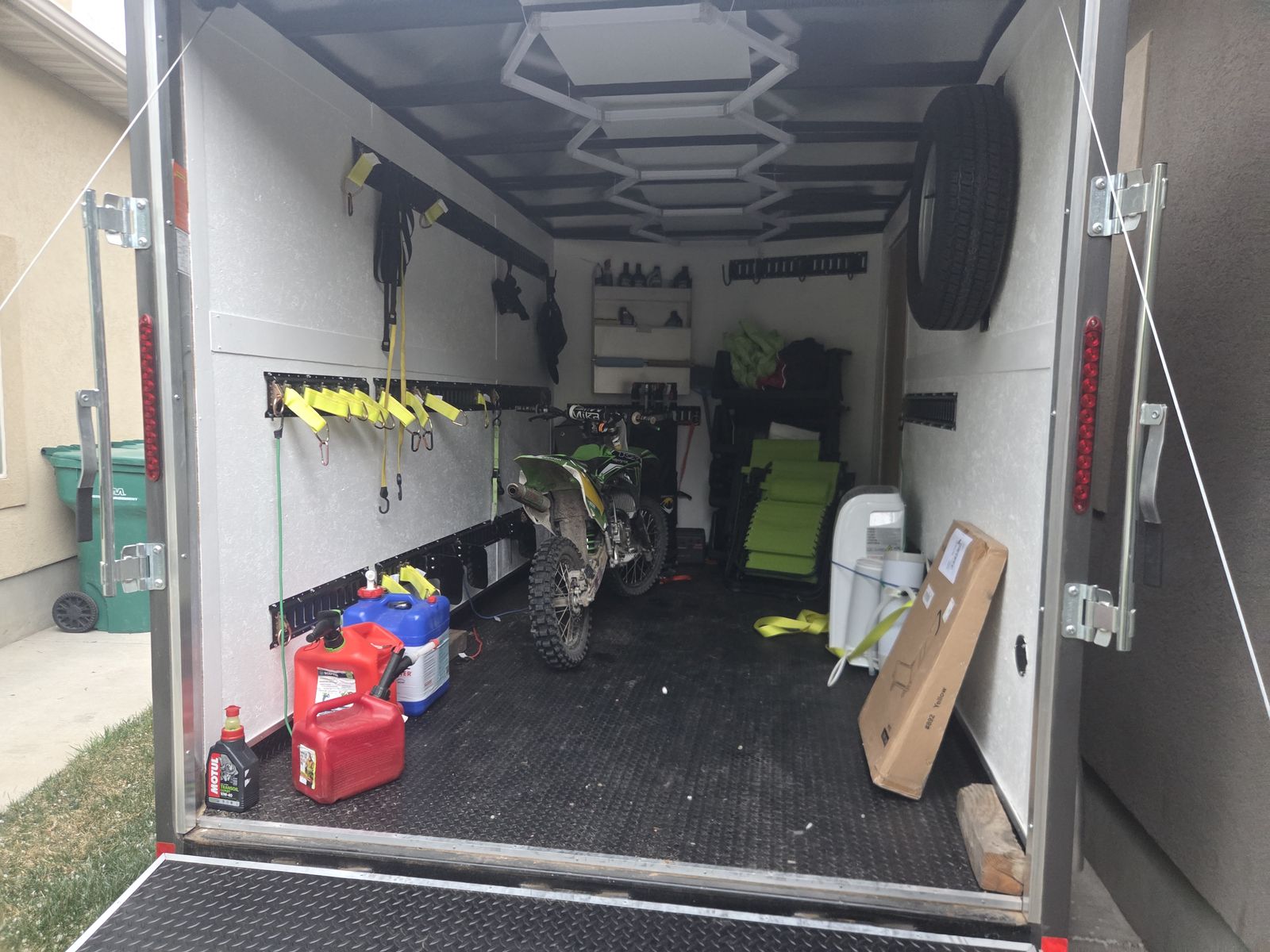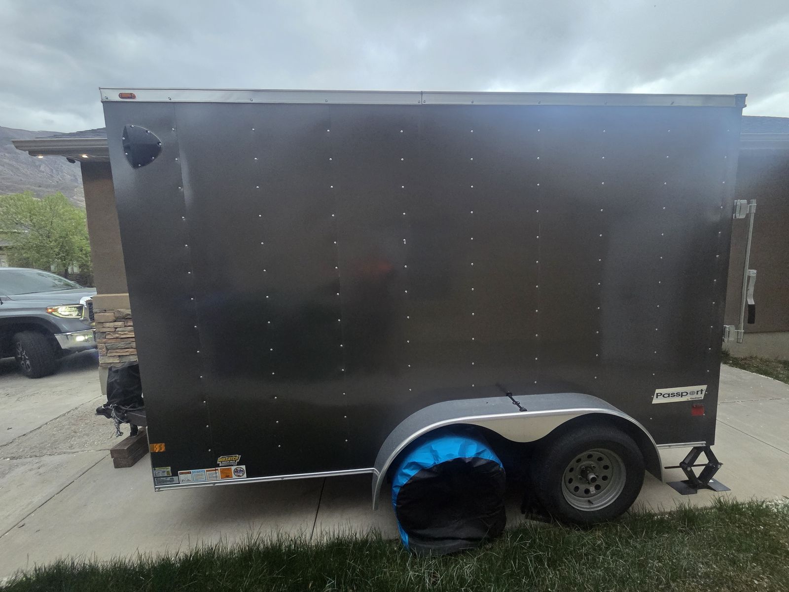 2024 Haulmark 7x12 Passport Trailer with less than 300 miles on the tires. Dual axel passenger side door with ramp for sale. No, the bikes and gear are not included, but if you are nice, you can keep the hex lights. Spare tire included.
