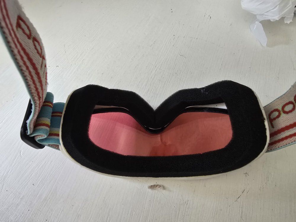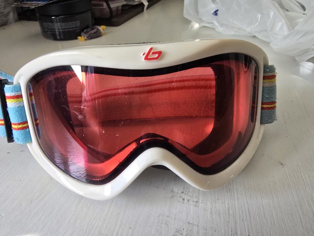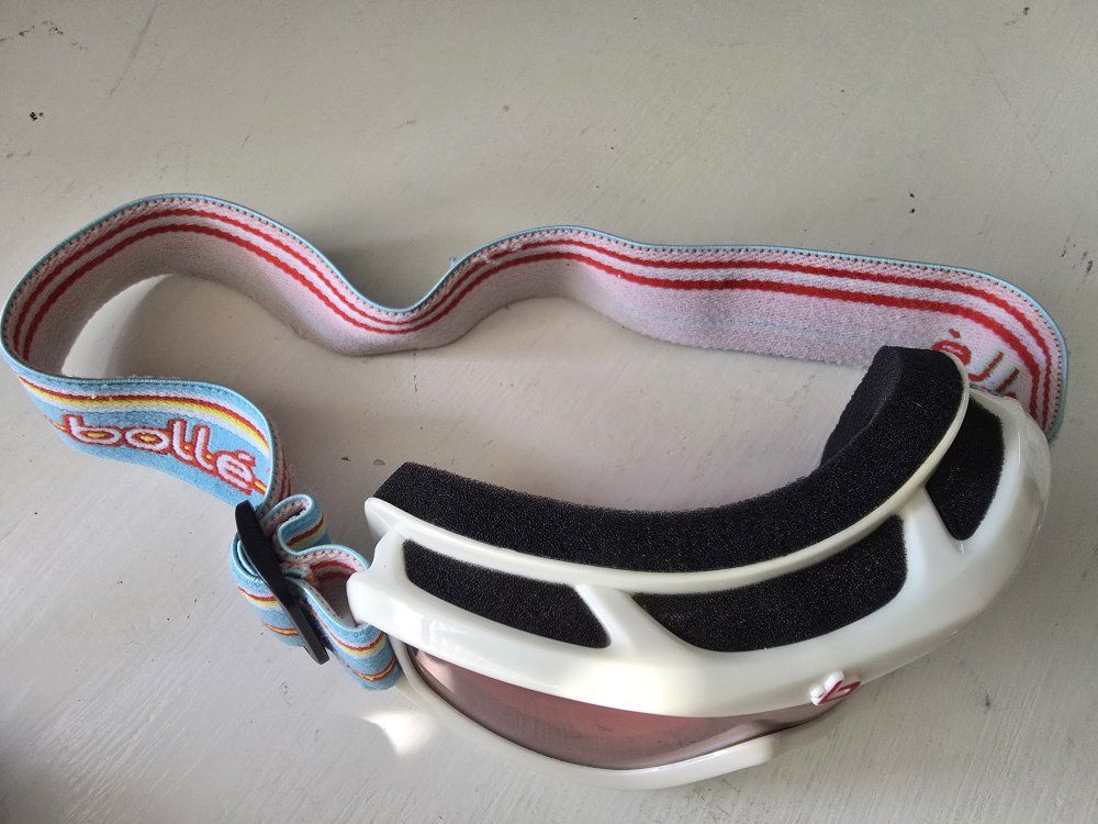 Bollé Ski Goggles: Amp in White Stripes with Vermillion Lens Youth Size