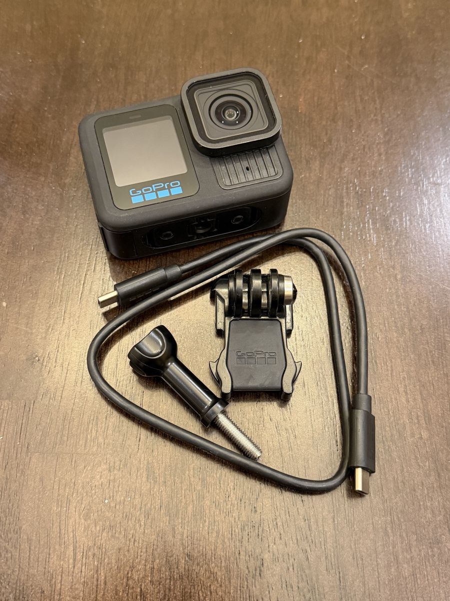 Includes: HERO13 Black camera 1 Enduro Rechargeable Battery Mounting buckle + Thumb screw USB-C to USB-C cable Unused Sticker Set (SD card NOT included)