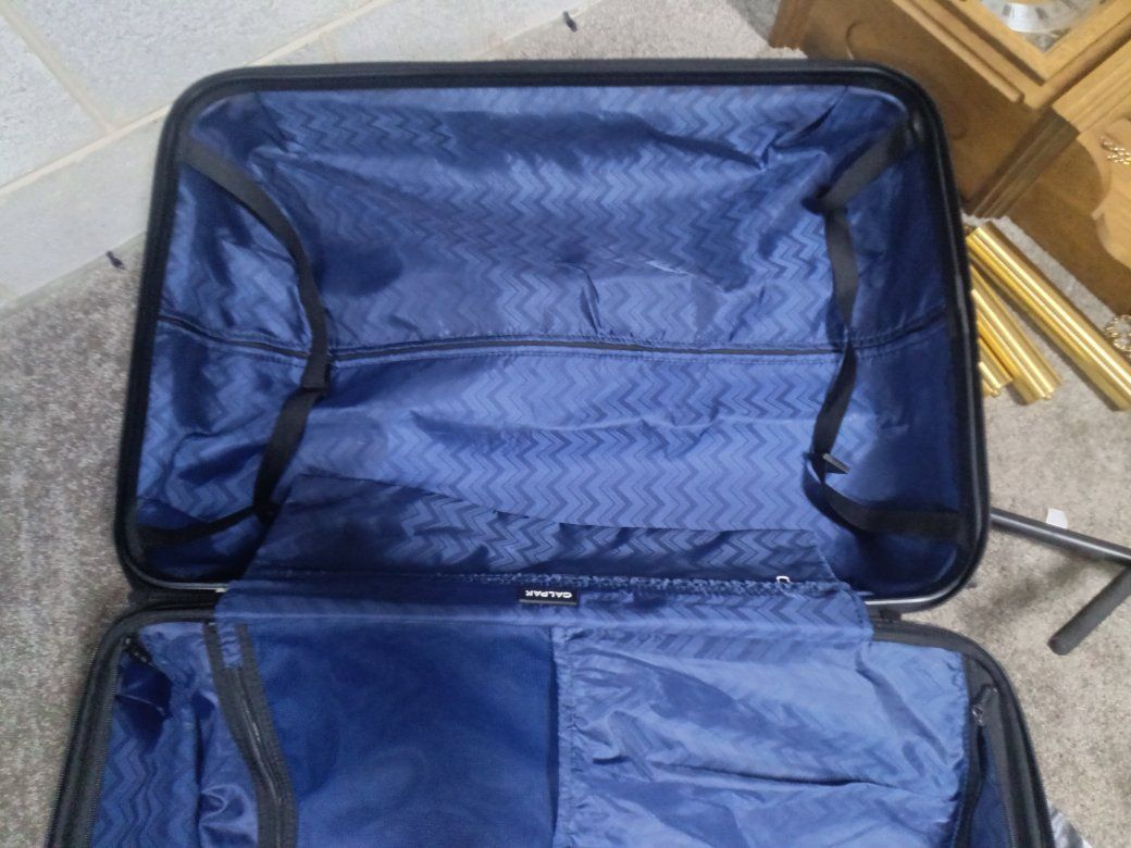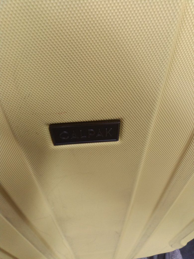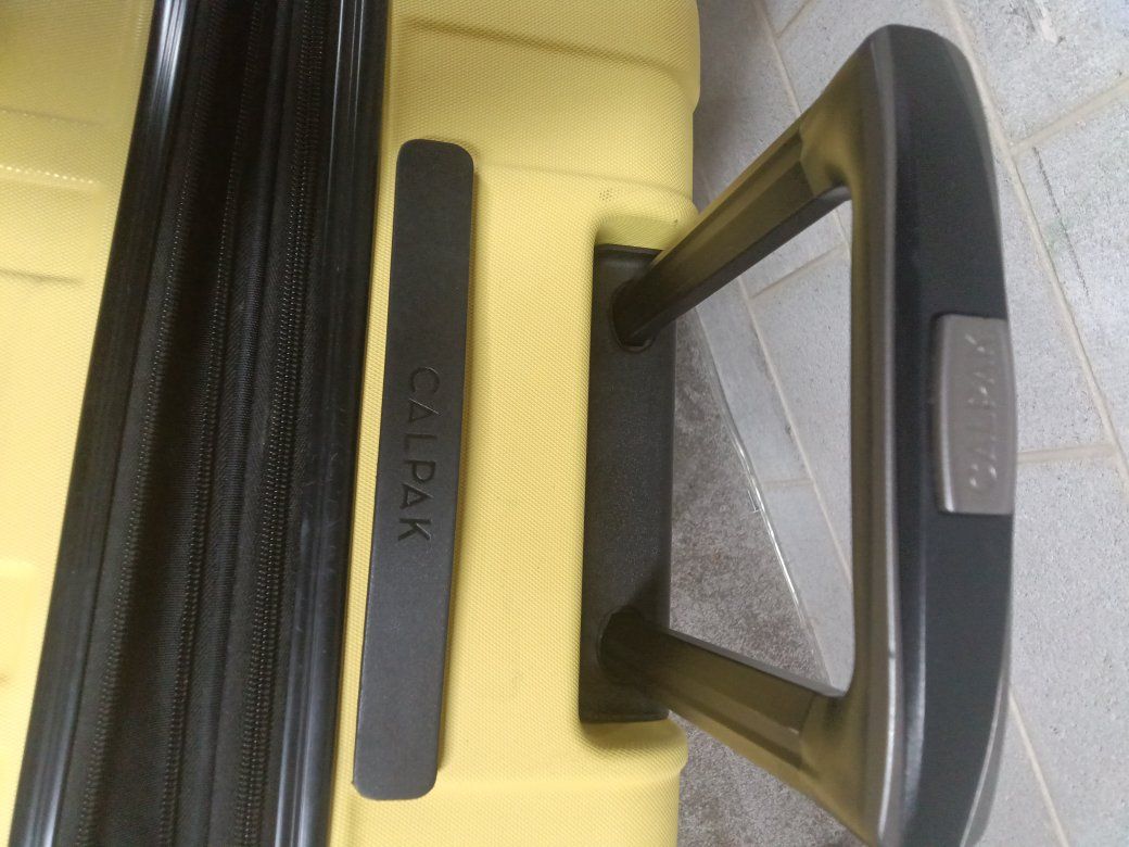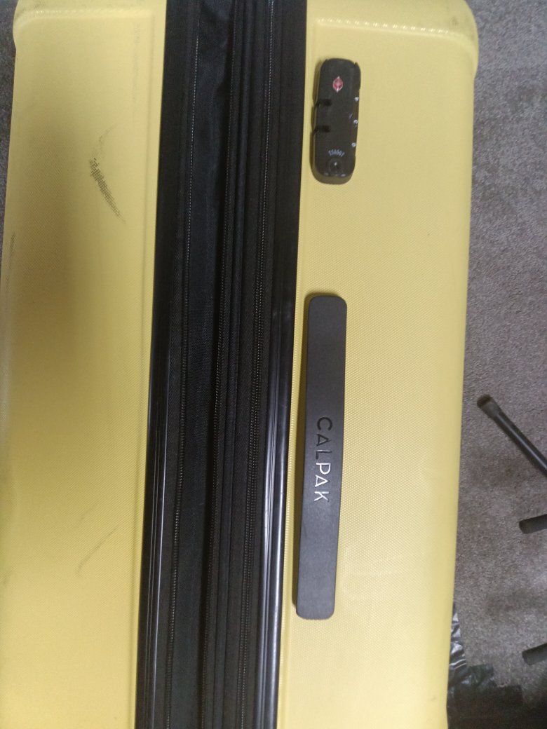 Calpak hard plastic luggage extra large has the expandable zipper for pivoting Wheels breezy transport clean with no smells your orders or anything funky kept an excellent condition works as it should! $35 obo!