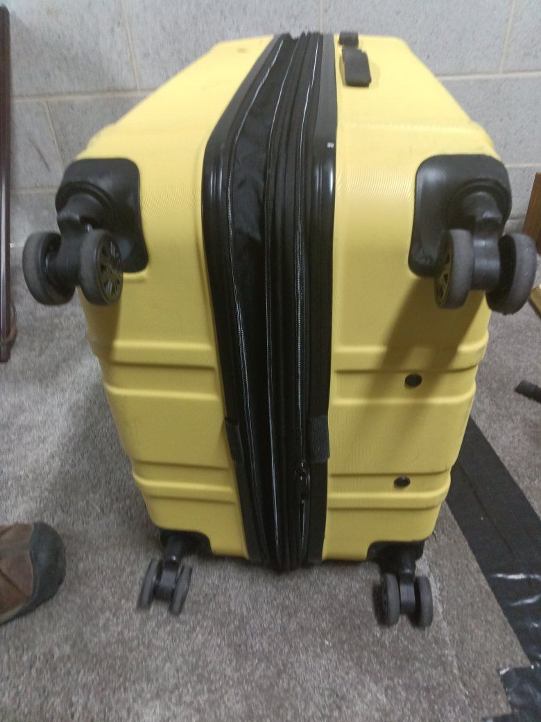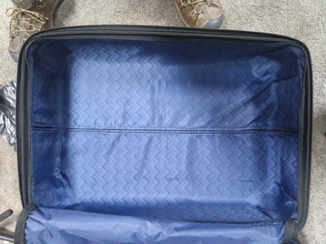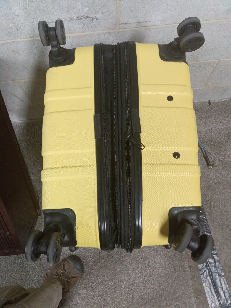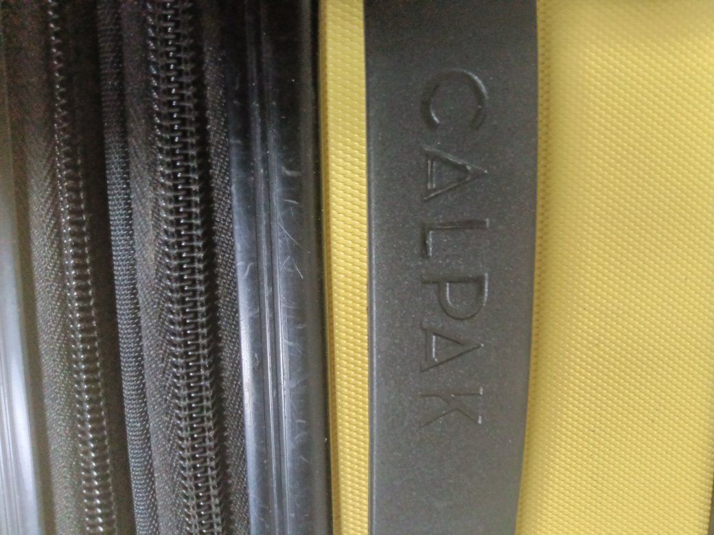 Calpak hard plastic luggage extra large has the expandable zipper for pivoting Wheels breezy transport clean with no smells your orders or anything funky kept an excellent condition works as it should! $35 obo!