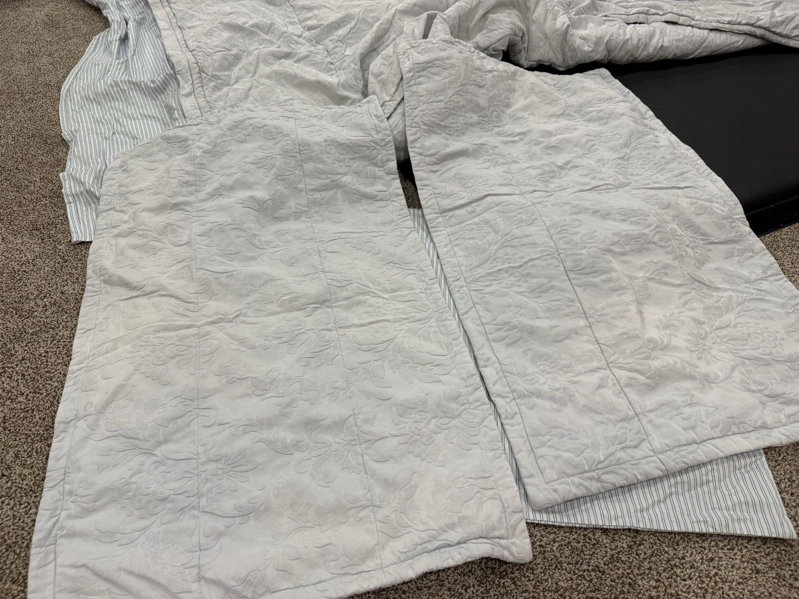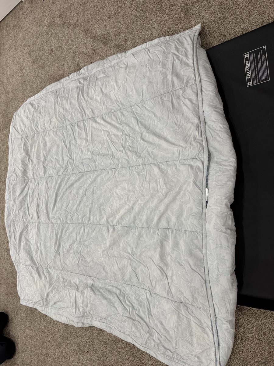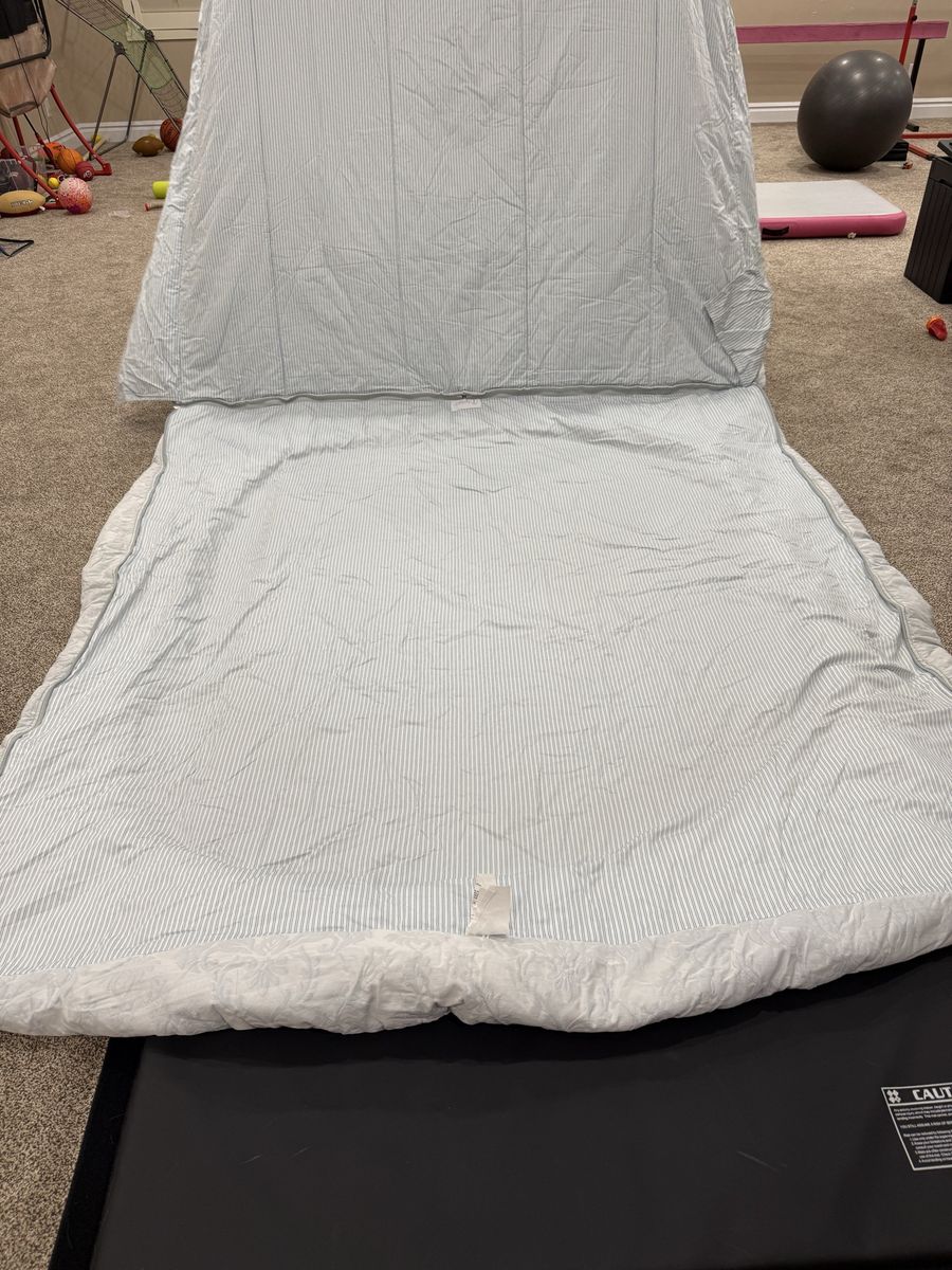 King Jane cotton. Has 2 shams and 2 cases, few faint stains on top and sham and some cooor fading on top. MAR49